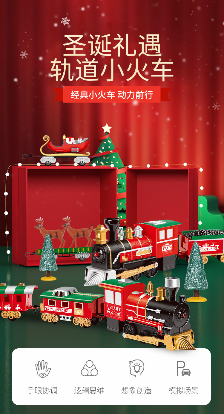 Assembly track retro train Christmas scene spray simulation train electric track car toy cross-border