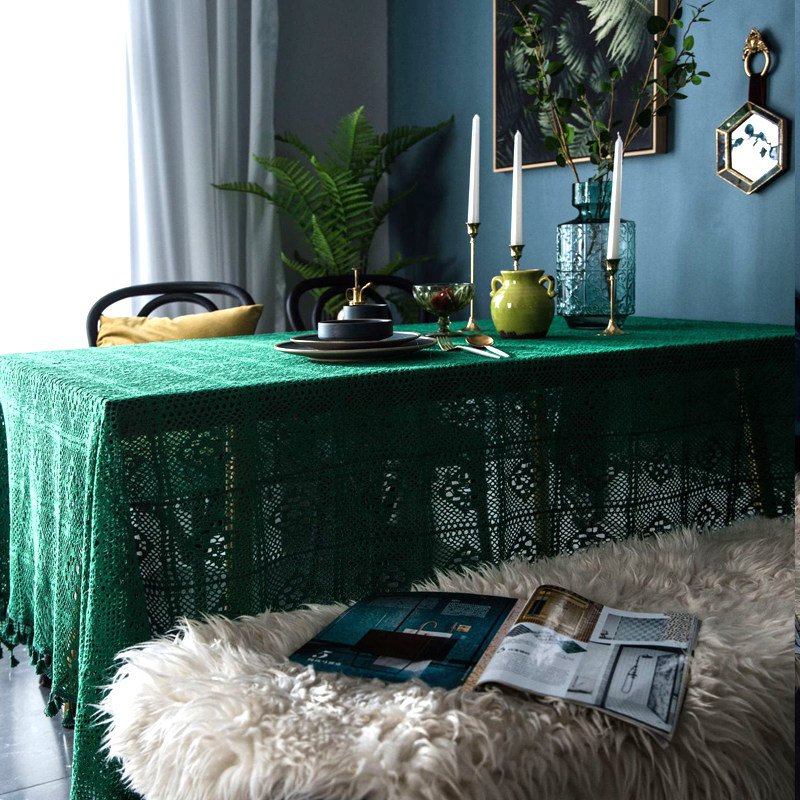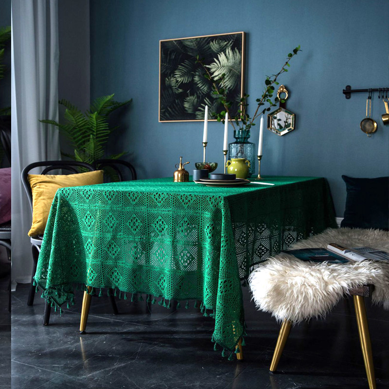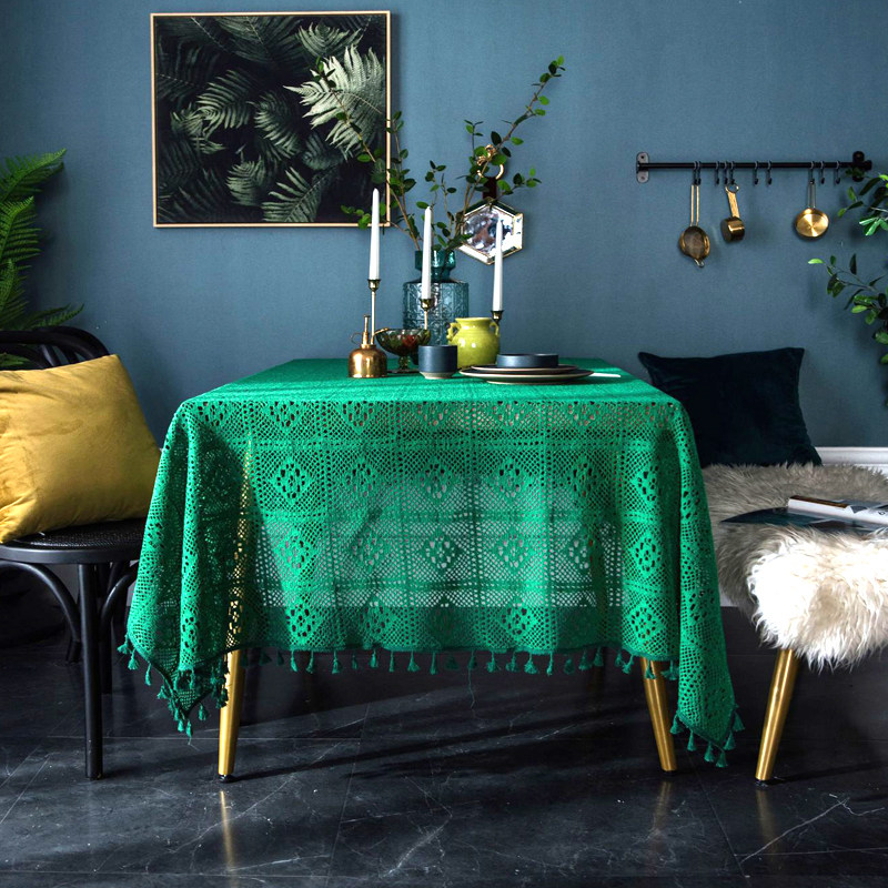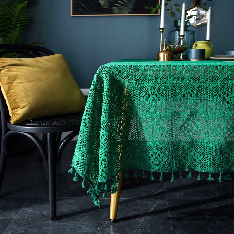 green plaids crochet with broom: 180*180 (suitable for round table)