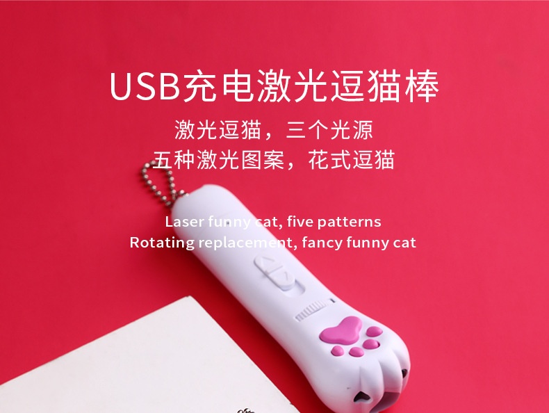 USB Rechargeable Laser Cat Teaser Multi-Pattern the Print of Cat's Paw Cat Teaser Toy Infrared Projection Funny Cat Pen