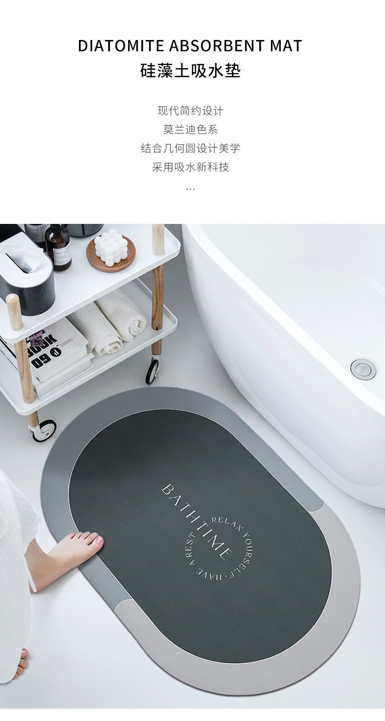 About Product:Material: diatom ooze style: simple and modern applicable space: bathroom features: non-slip, absorbent, moisture-proof applicable scene: Household