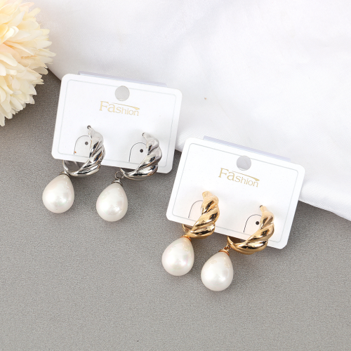 925 silver needle european and american style pearl water drop ear studs geometric c- shaped simple vintage earrings ins fashion net red earrings
