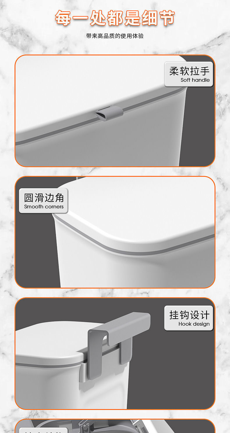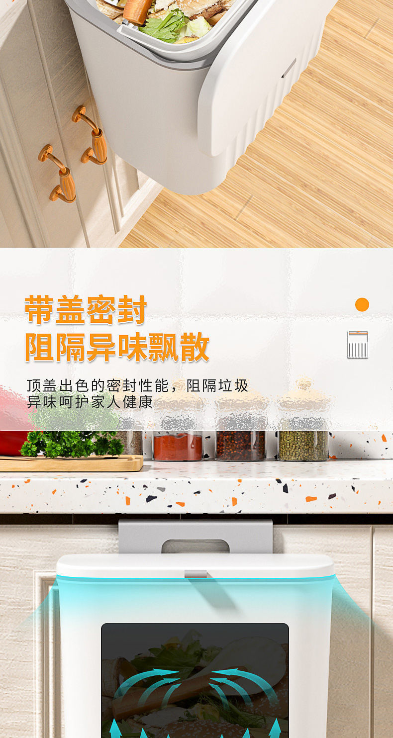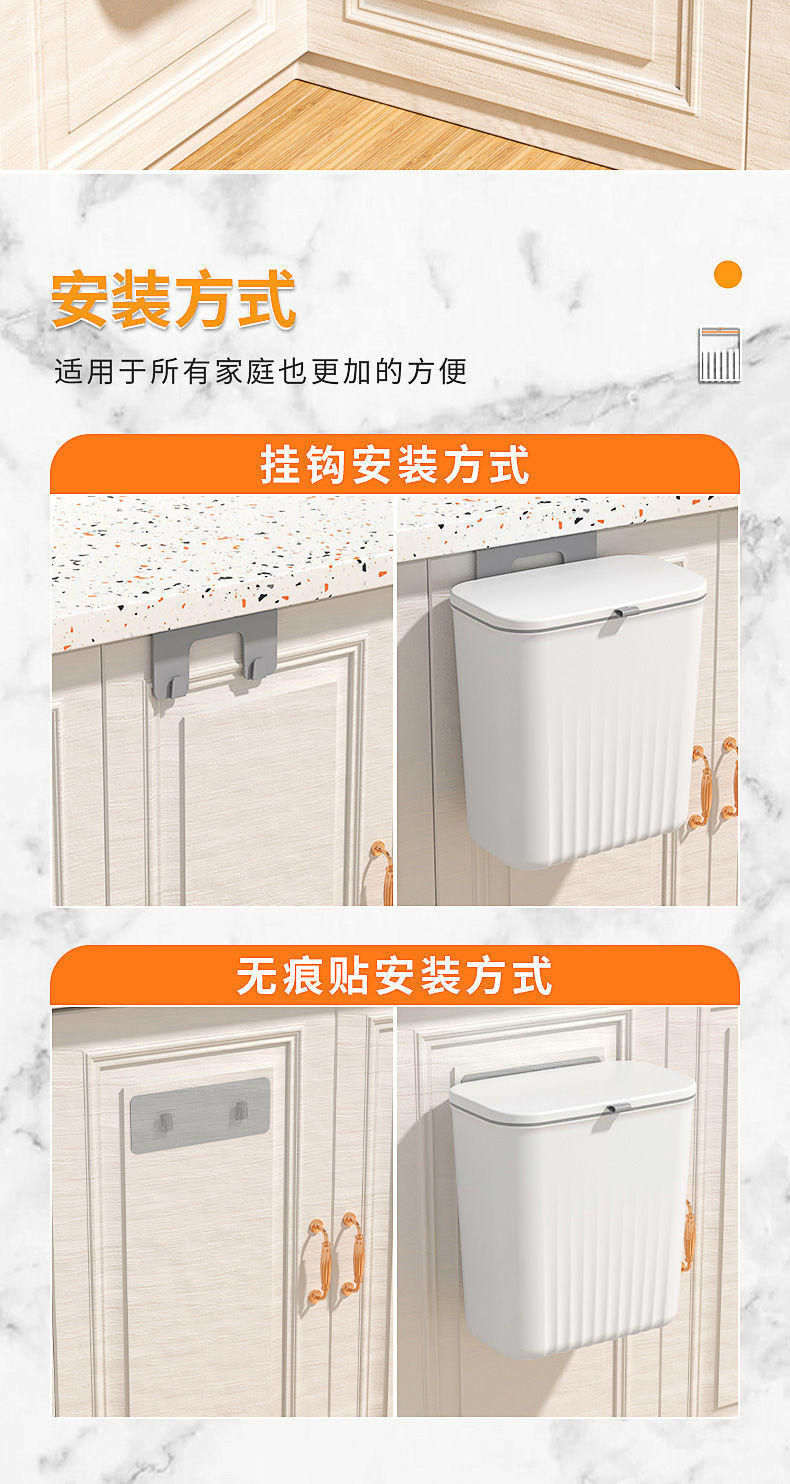 Kitchen Trash Can Hanging Household with Lid Cabinet Door Wall-Mounted Kitchen Waste Trash Can Hanging Toilet