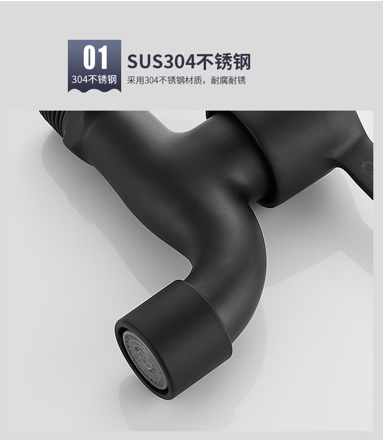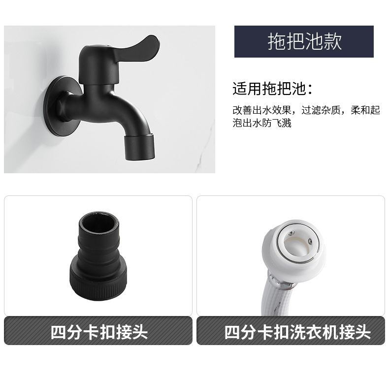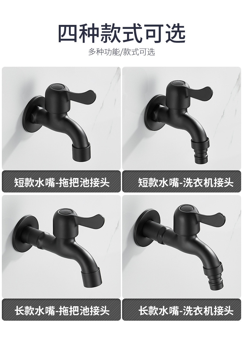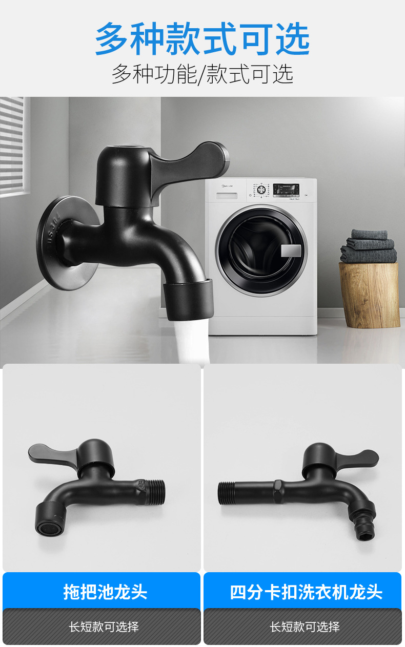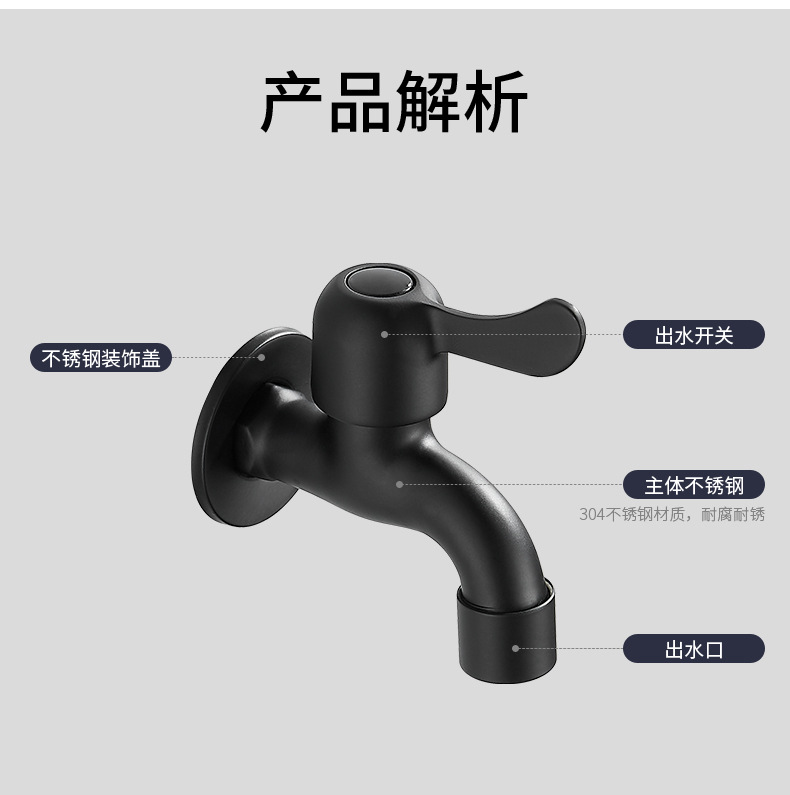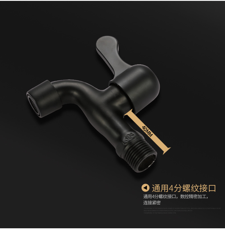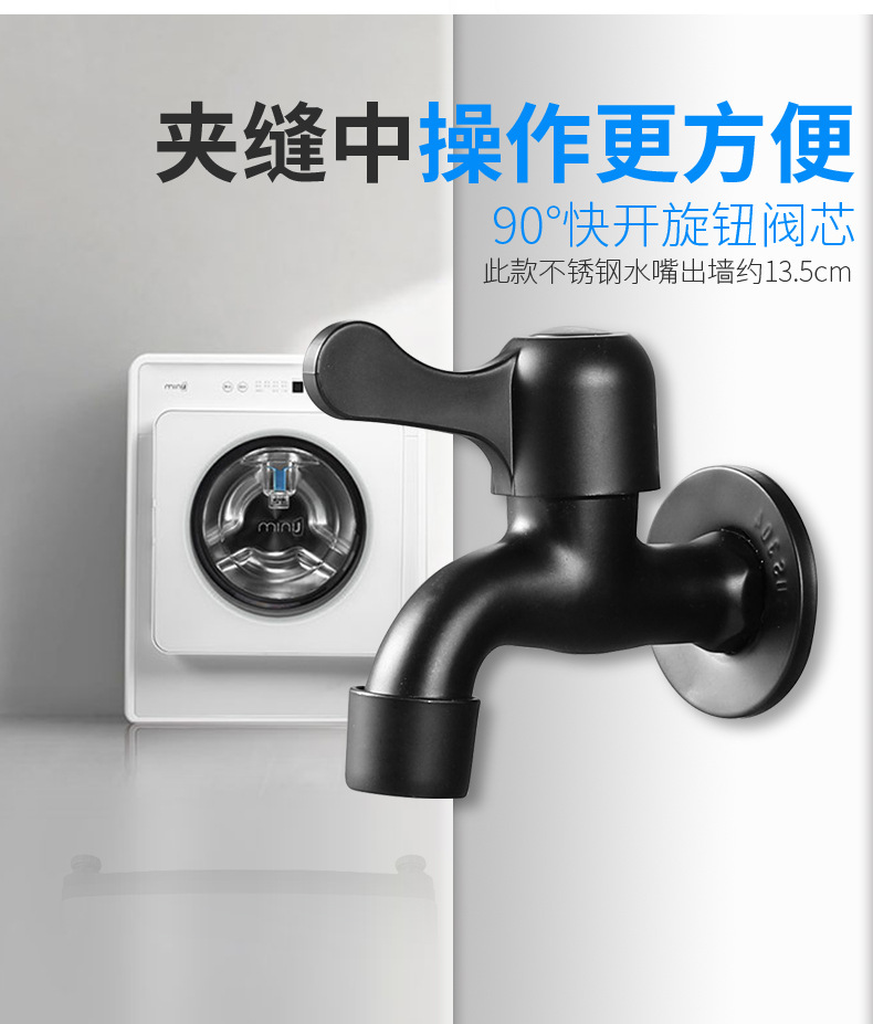 Black Paint 304 Stainless Steel Faucet Washing Machine Water Tap 4 Points Quick Opening Lengthened Mop Pool Balcony Small Water Faucet