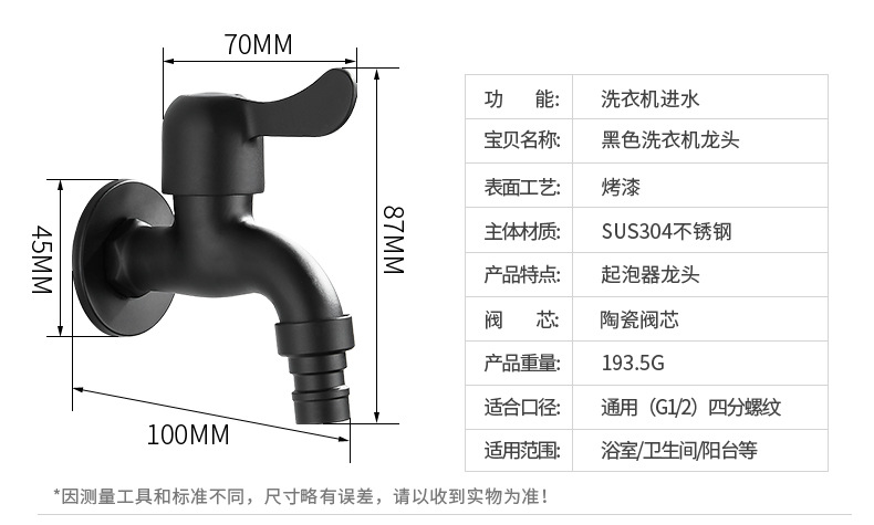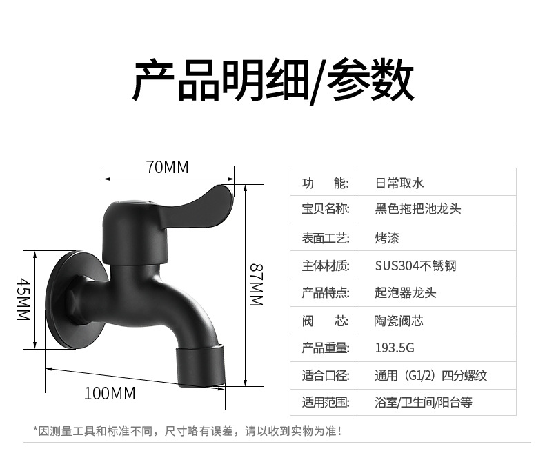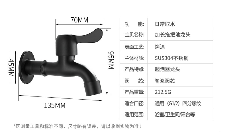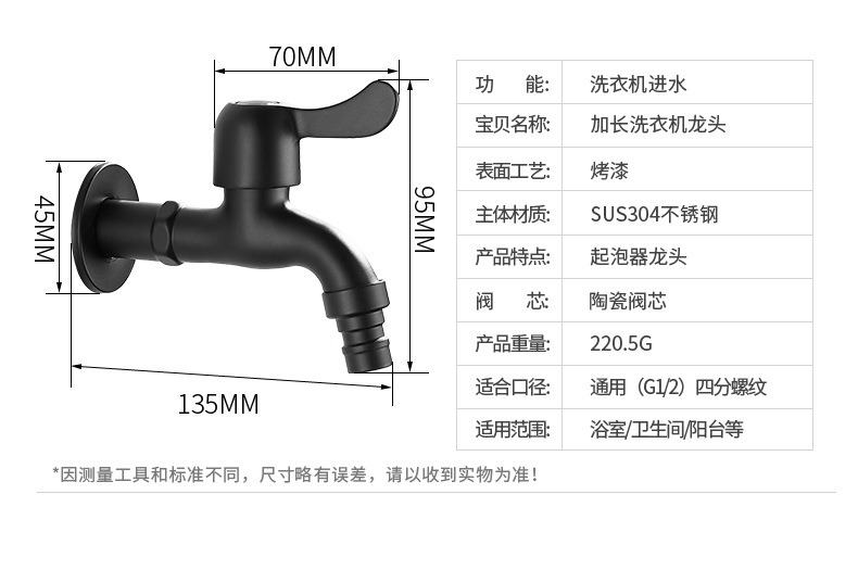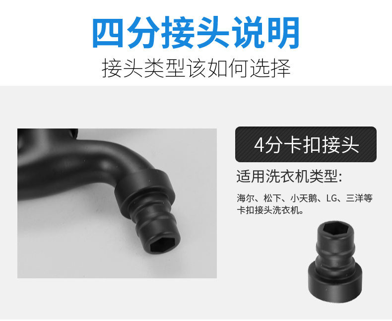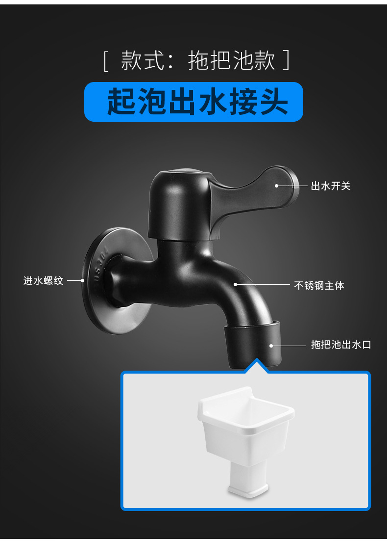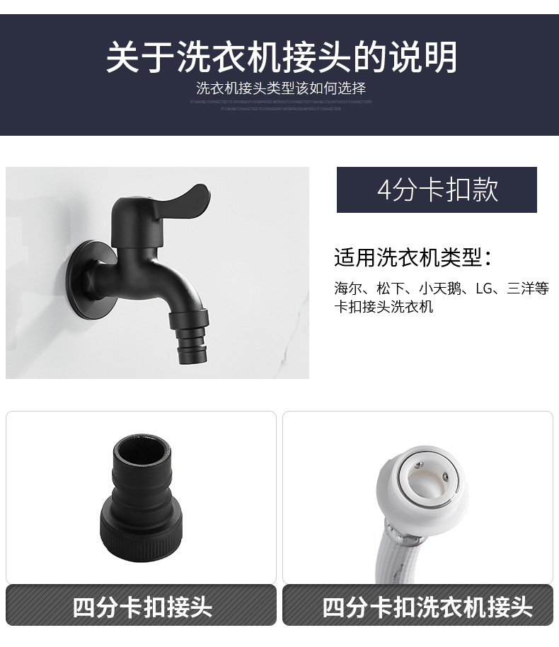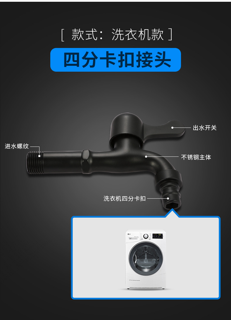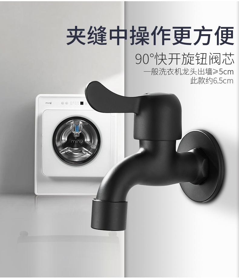 Black Paint 304 Stainless Steel Faucet Washing Machine Water Tap 4 Points Quick Opening Lengthened Mop Pool Balcony Small Water Faucet