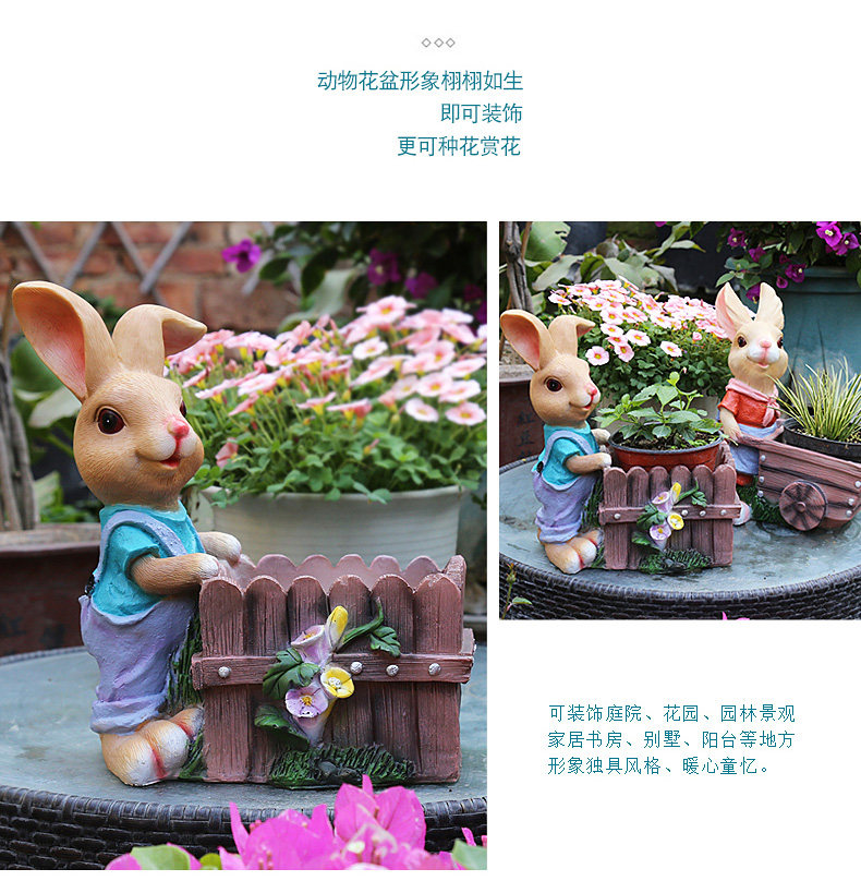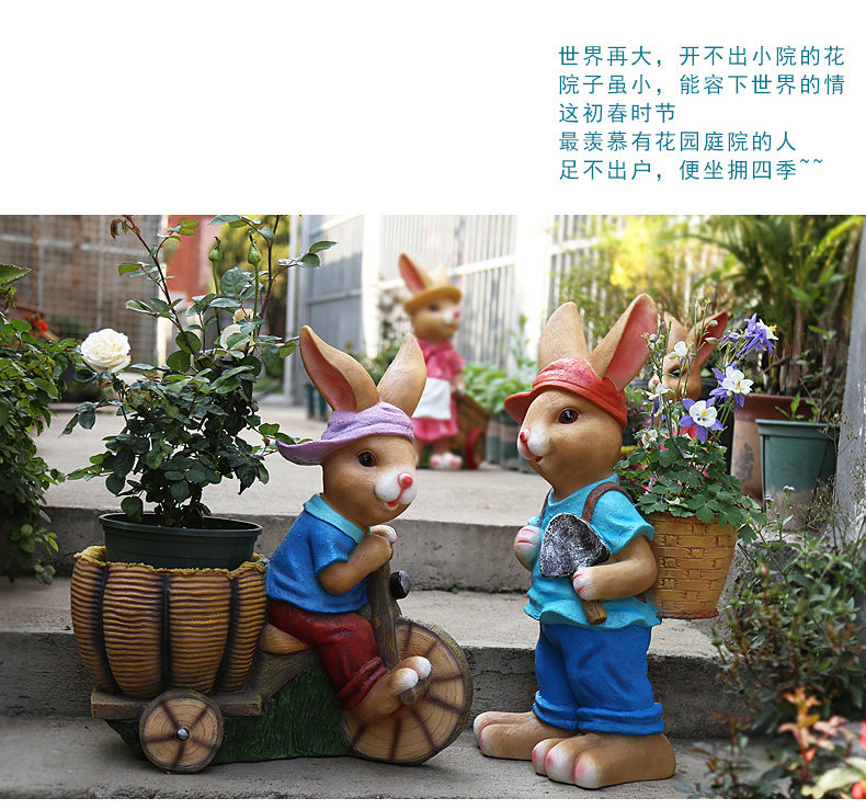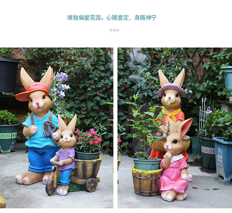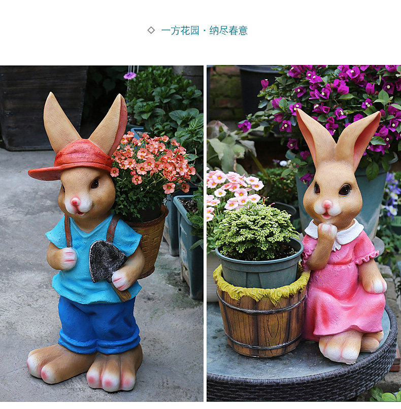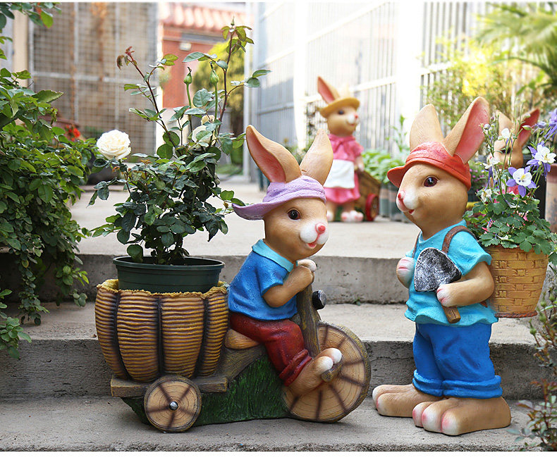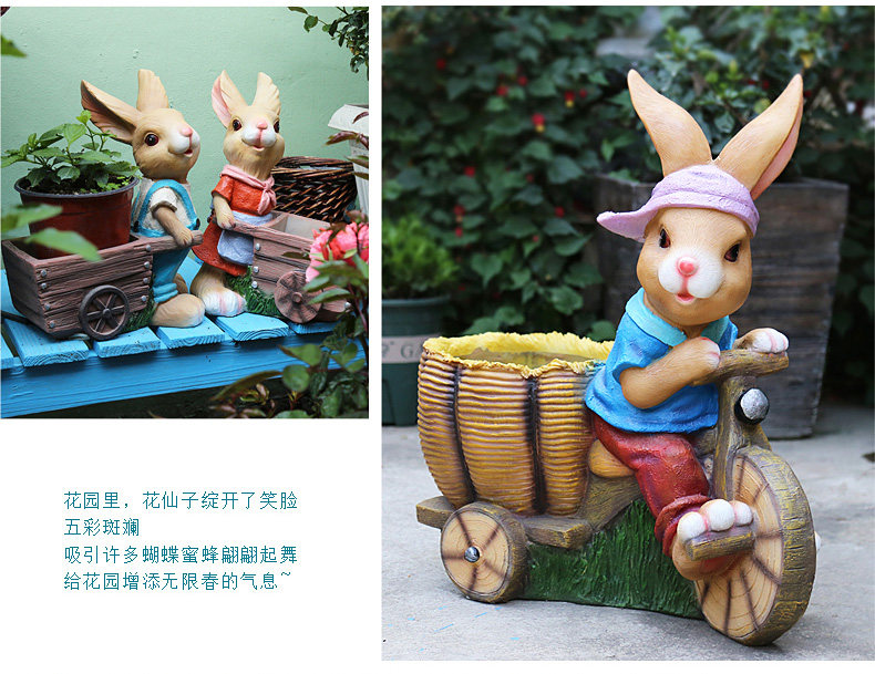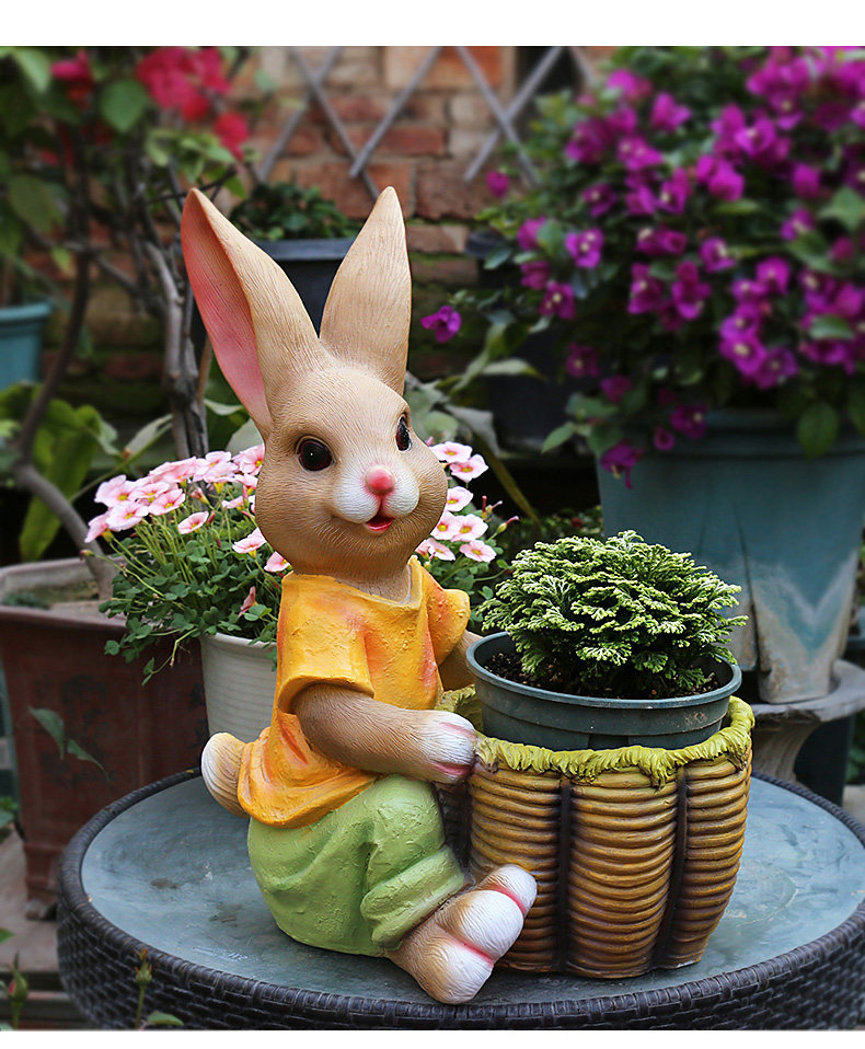 garden cartoon rabbit decoration large floor garden outdoor decoration garden kindergarten creative flower pot resin