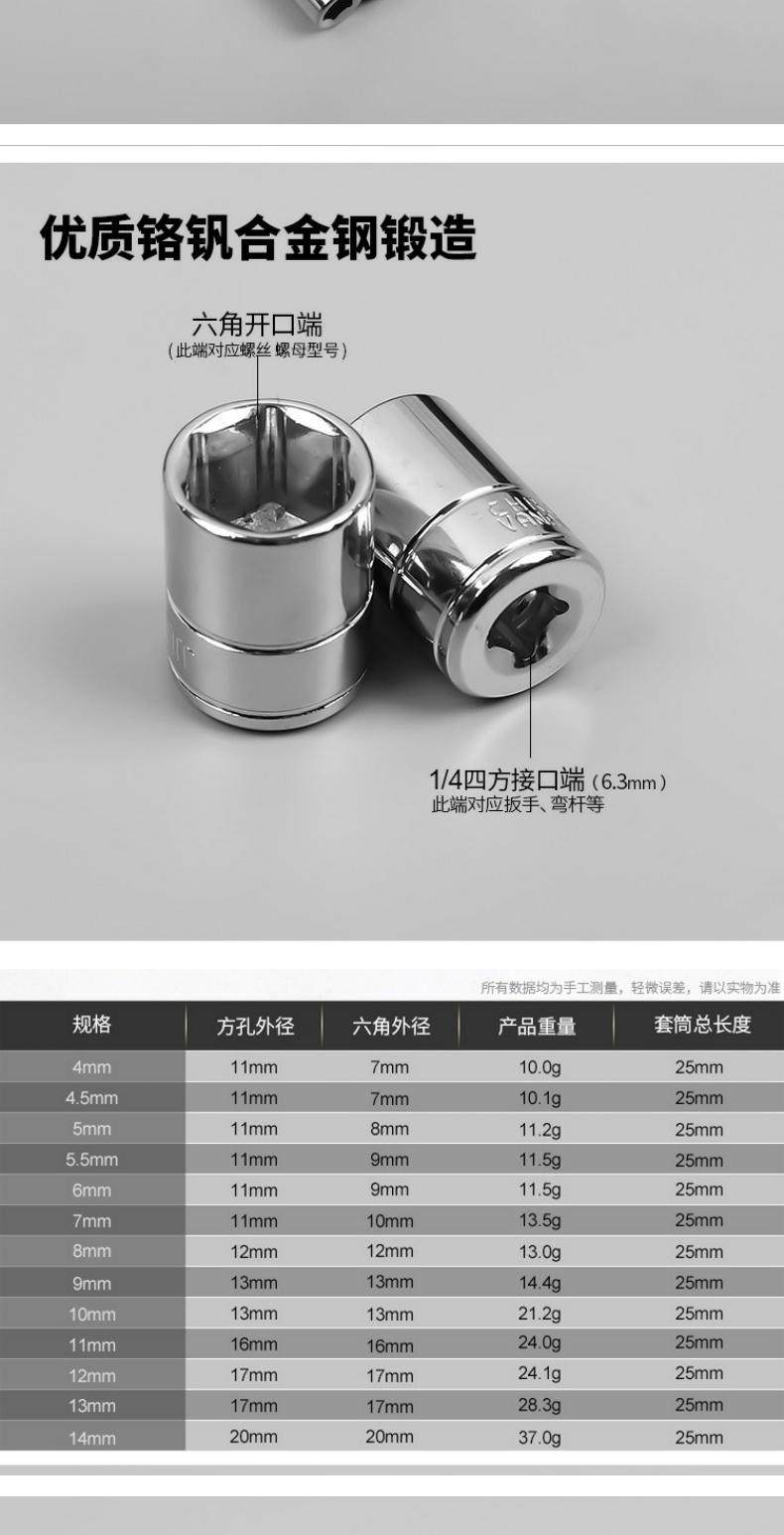 14 Short Sleeve Head 4-14mm Xiaofei Outer Hexagonal Sleeve 6.3mm Casinghead Ratchet Wrench Head Auto Repair