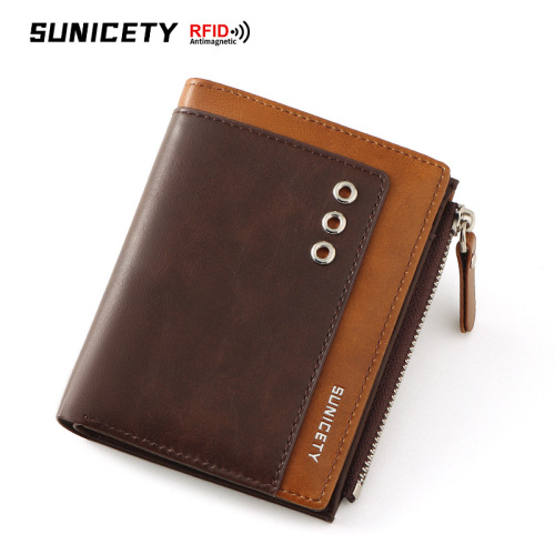 New Men's Multiple Card Slots Zipper Short Anti-Theft Swiping RFID Foreign Trade Wholesale USD Wallet Card Coin Purse Men