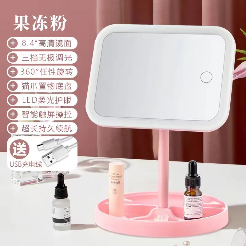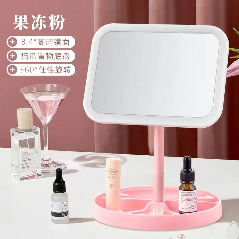 pink oversized highly clear mirror + three-color light rechargeable: square claw-like plate (360-degree rotation)