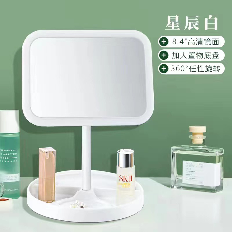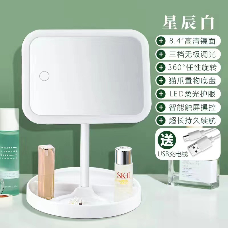 white oversized highly clear mirror + three-color light rechargeable: square claw-like plate (360-degree rotation)