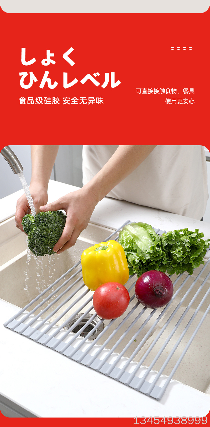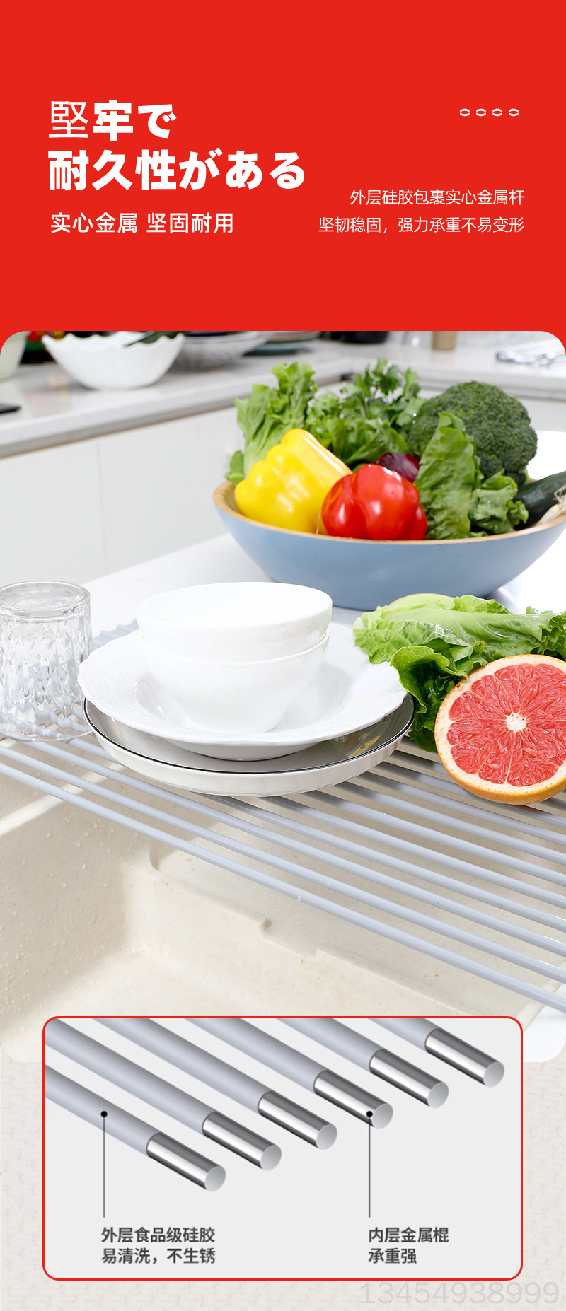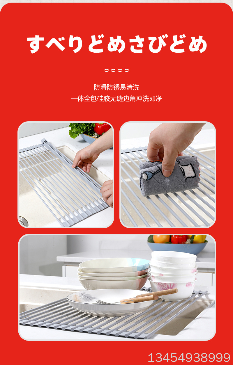 ②kitchen sink draining rack foldable storage space-saving draining rack l-8413
