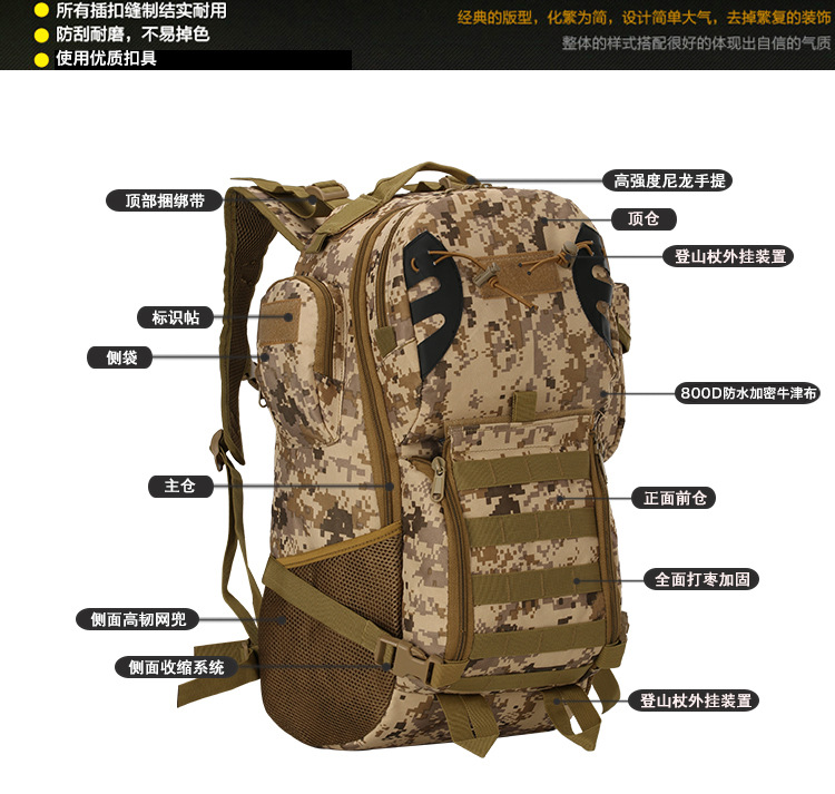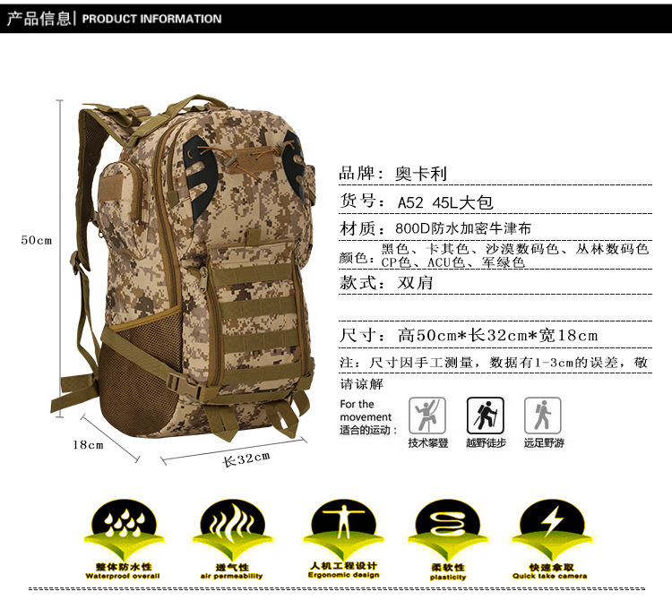 new outdoor sports hiking hiking backpack sports bag large-capacity backpack tactical 45l bag