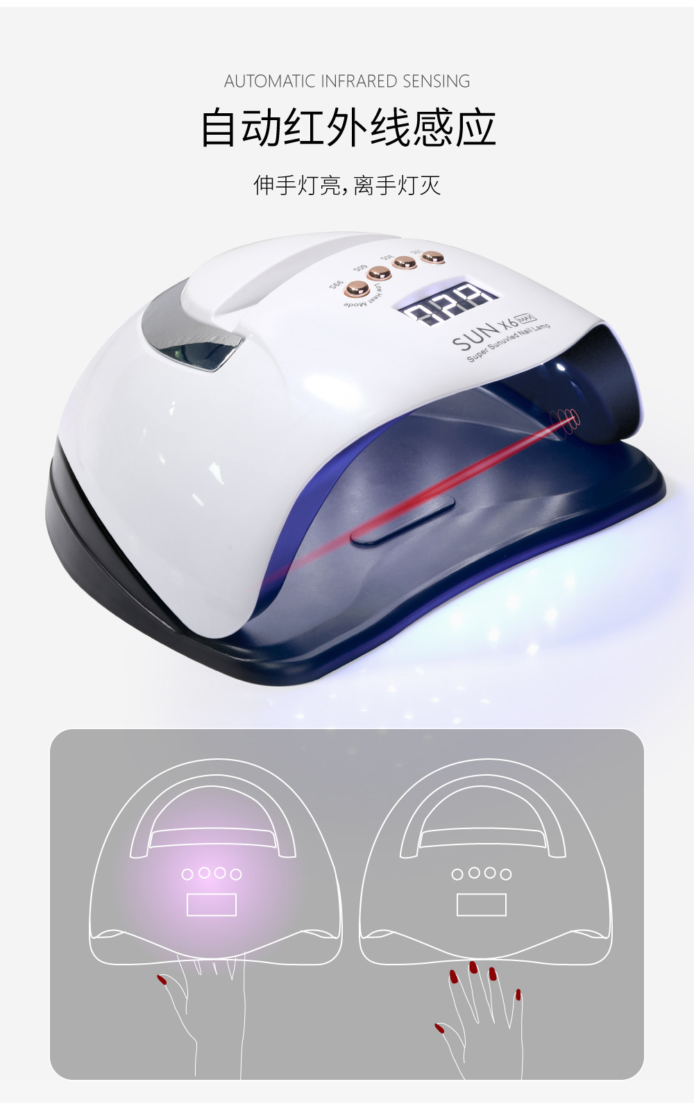 High-Power Nail Lamp Phototherapy Lamp Portable Led Non-Black Hand Phototherapy Machine Quick-Drying Nail UV Baking Lamp 220W