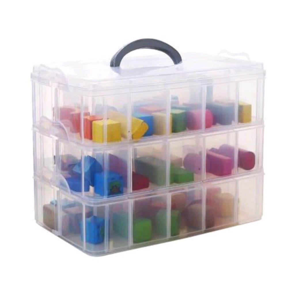 Extra Large Multi-Layer Plastic Suitcase with Lid Lego Building Blocks Storage Box Portable Multi-Grid Detachable Storage Organizing Box
