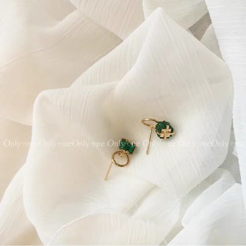 emerald square gemstone stud earrings high-grade light luxury retro earrings elegant simple all-match korean style earrings