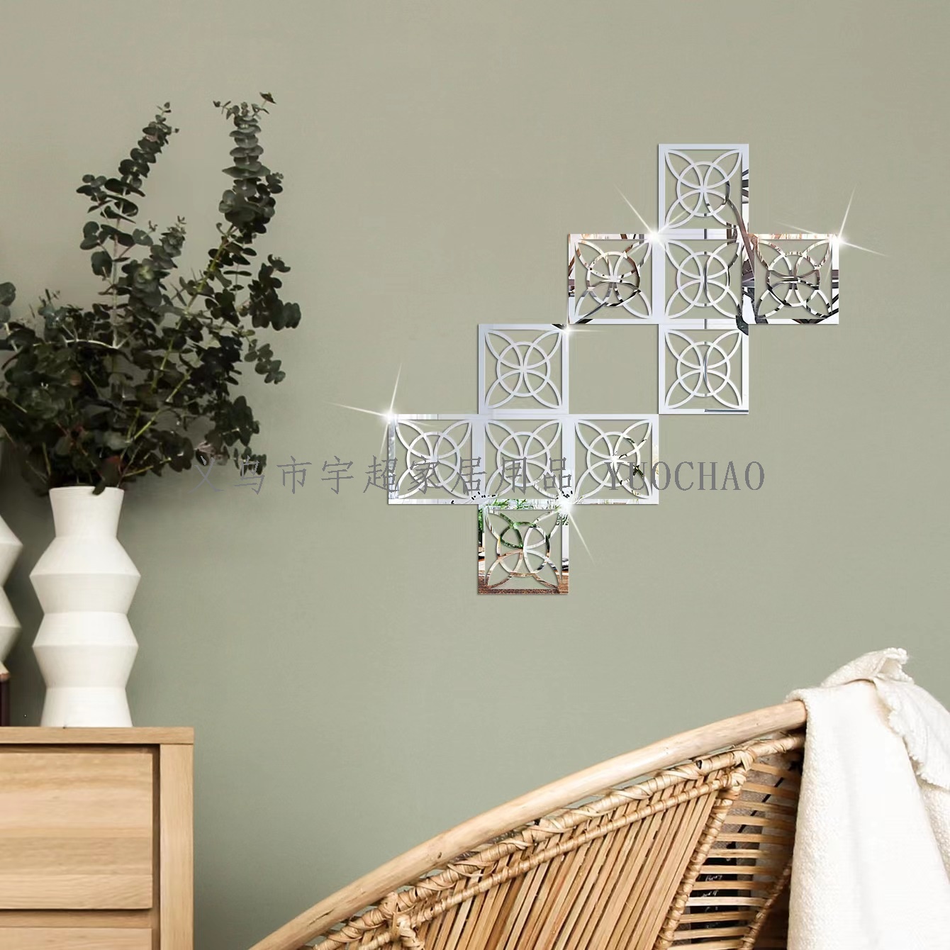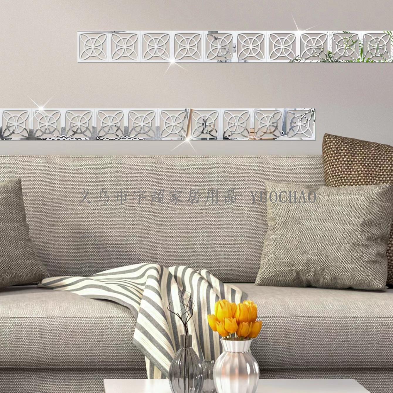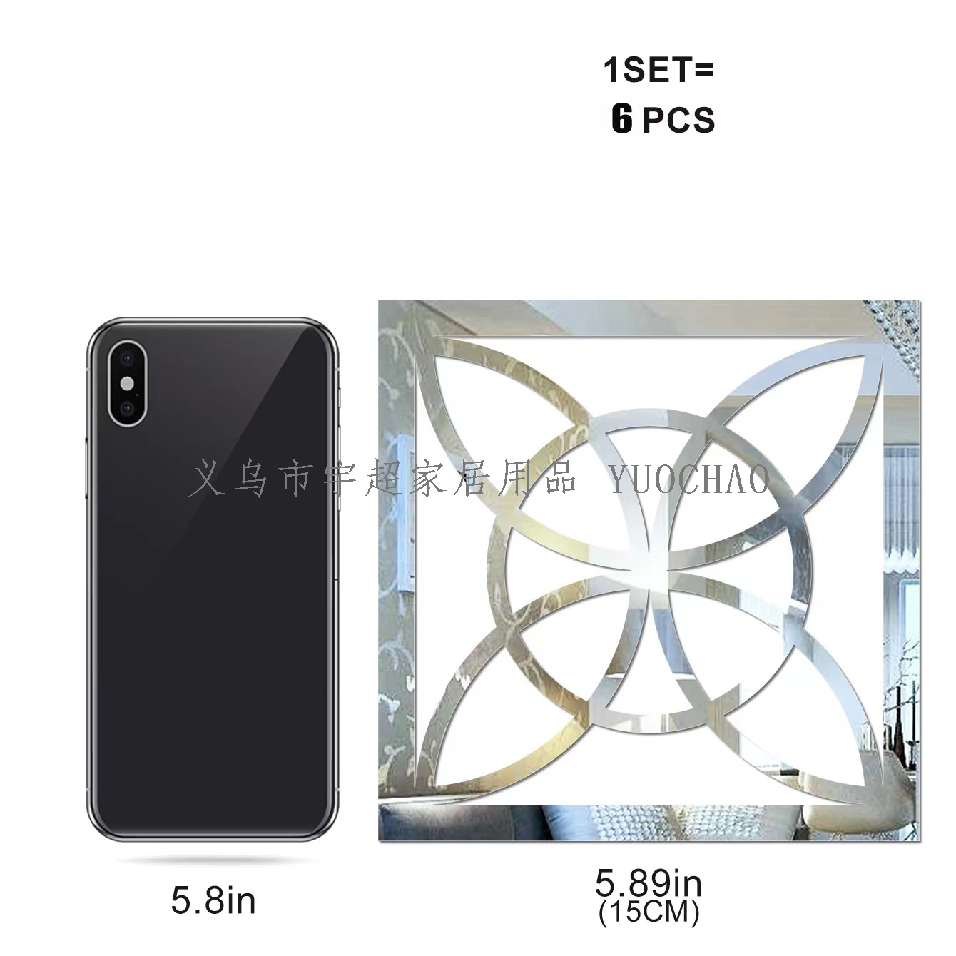About Product:15 * 15CM * 6PCs mirror waist line sticker (comes with adhesive) color: gold/silver/Black usage: kitchen/living room/bedroom/ceiling/background wall/door frame....