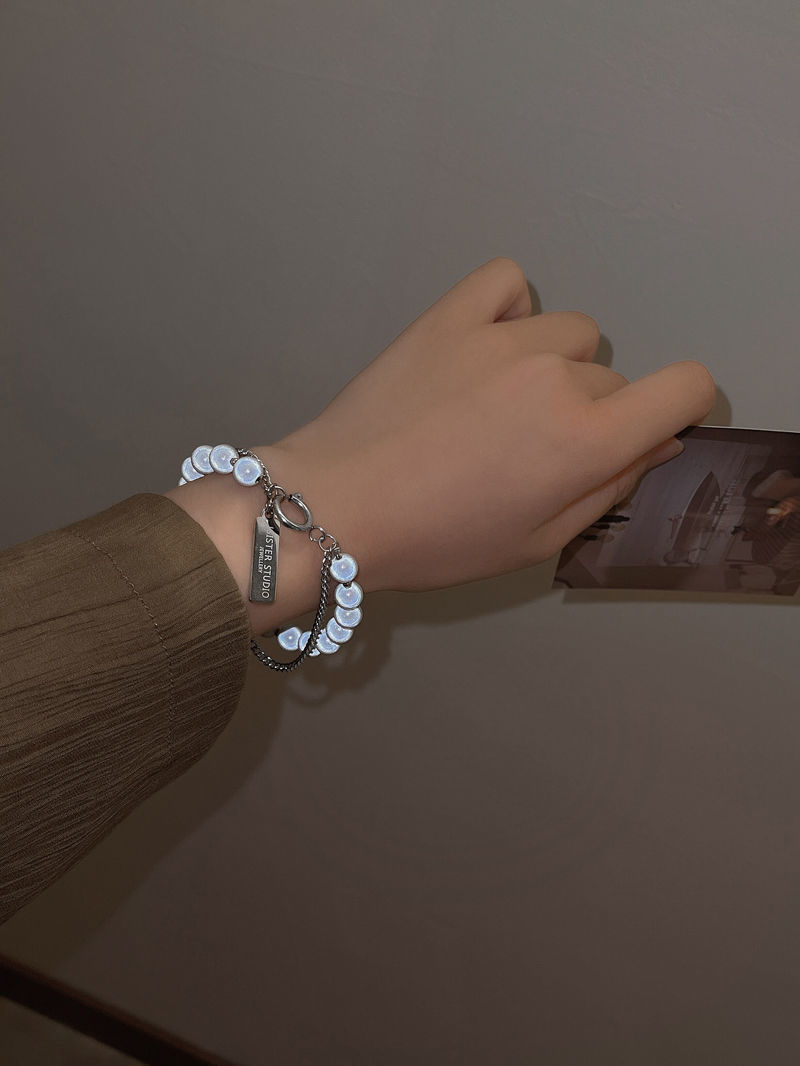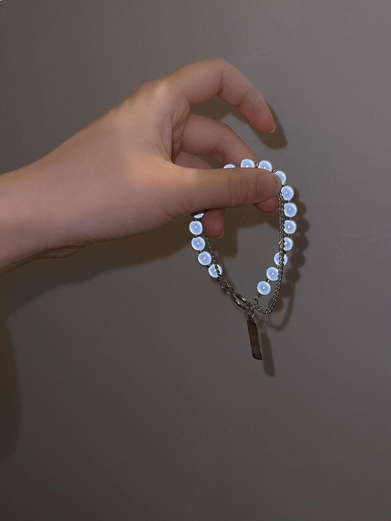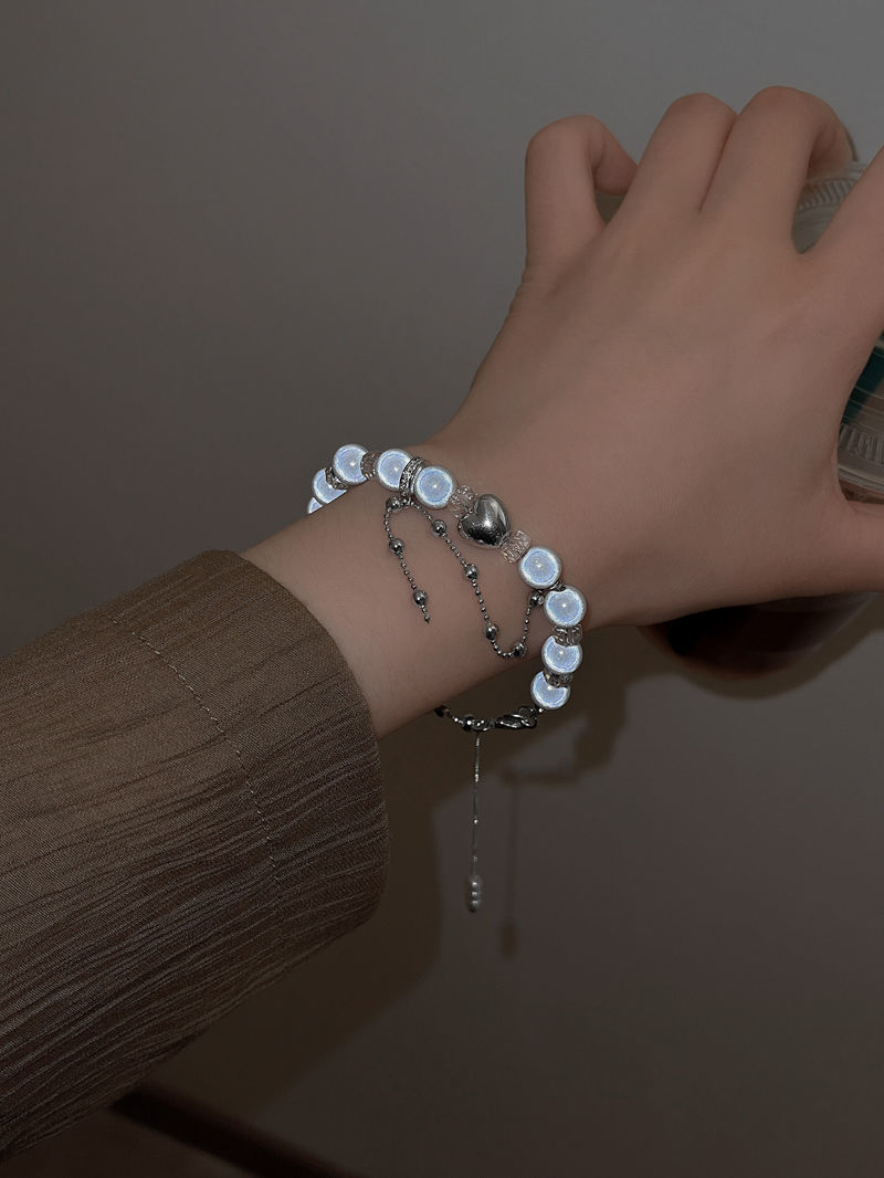 Reflective Beads Double-Layer Stacked Square Bracelet Female Ins Special-Interest Design Bracelet Summer Simple Design All-Match Student Jewelry