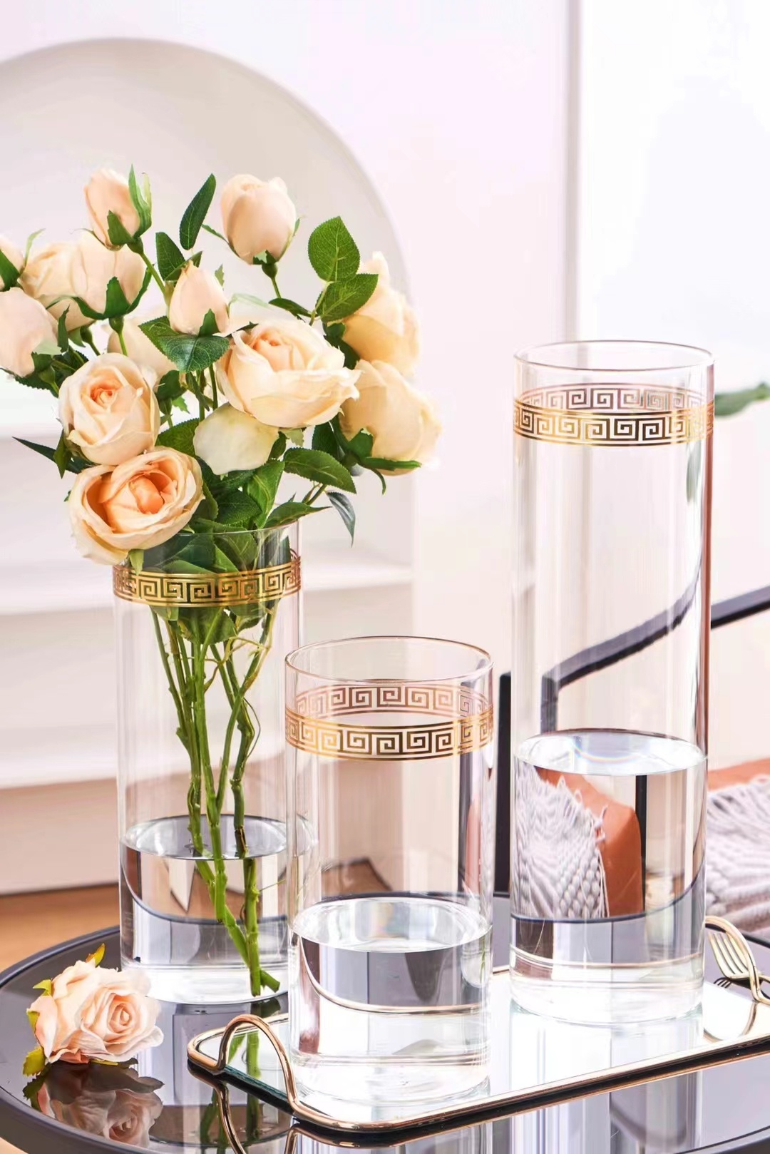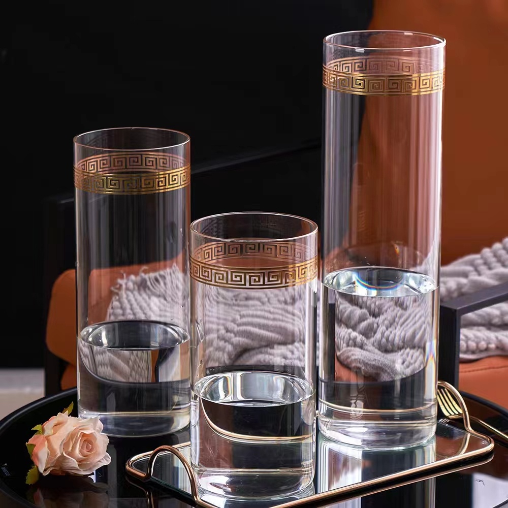 glossy vase golden vase straight vase glass vase