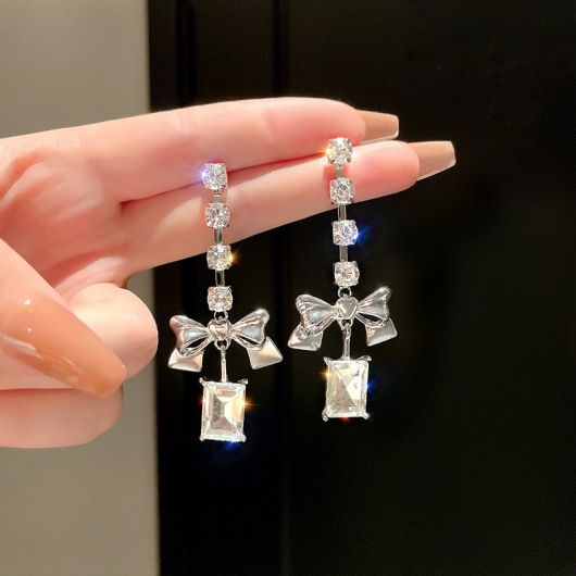 925 Silver Needle Trendy Brand New Refined Zircon Stitching Earrings Female Ins Temperament Entry Lux Bow Design Earrings