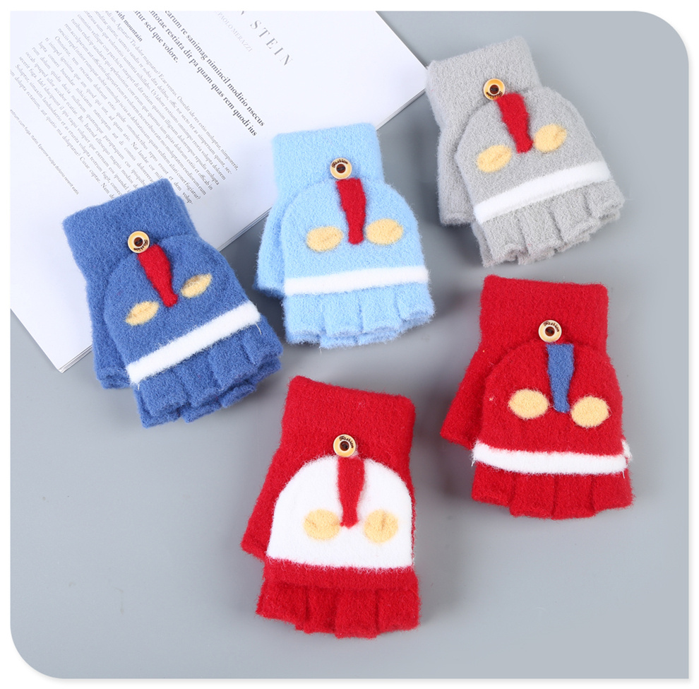 Product Name: Half-finger Cute Cartoon Colored Boys and Girls Warmth Preserving Child Gloves for Elementary School Students - Winter Children's Fold-over GlovesProduct color: as shown (available in multiple colors)