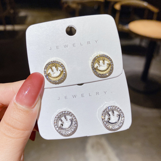 S925 Korean Internet Celebrity Fashion Sweet Sparkling Full Rhinestone Smiley Face Ear Studs Female Korean Simple and Compact Earrings Jewelry