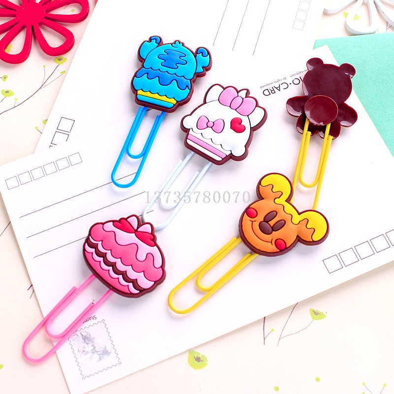 wholesale custom soft rubber large cute plastic coated clip drop plastic silicone color creative bookmarks cartoon paper clip