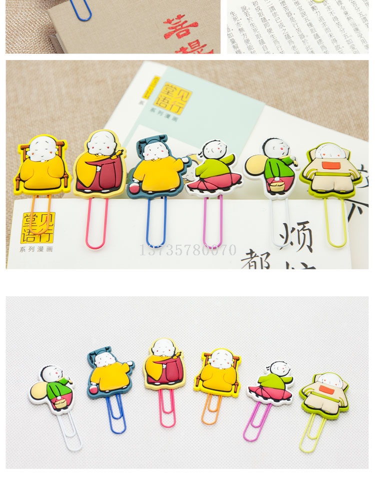 wholesale custom soft rubber large cute plastic coated clip plastic drop silicone color creative bookmarks cartoon paper clip