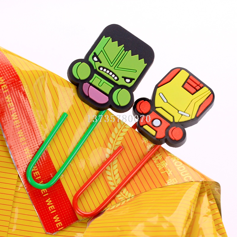 wholesale custom soft rubber large cute plastic coated clip plastic drop silicone color creative bookmarks cartoon paper clip