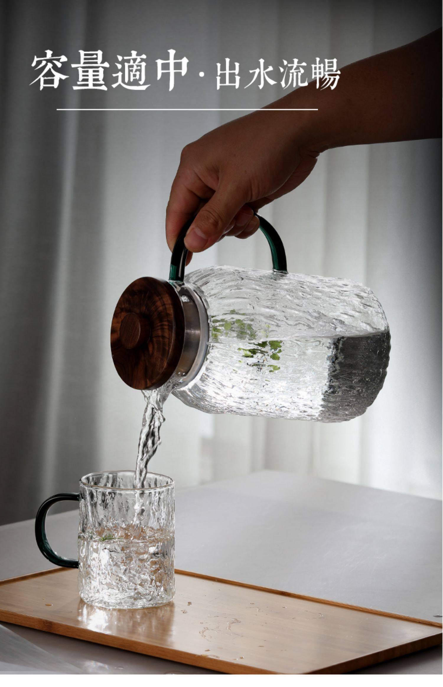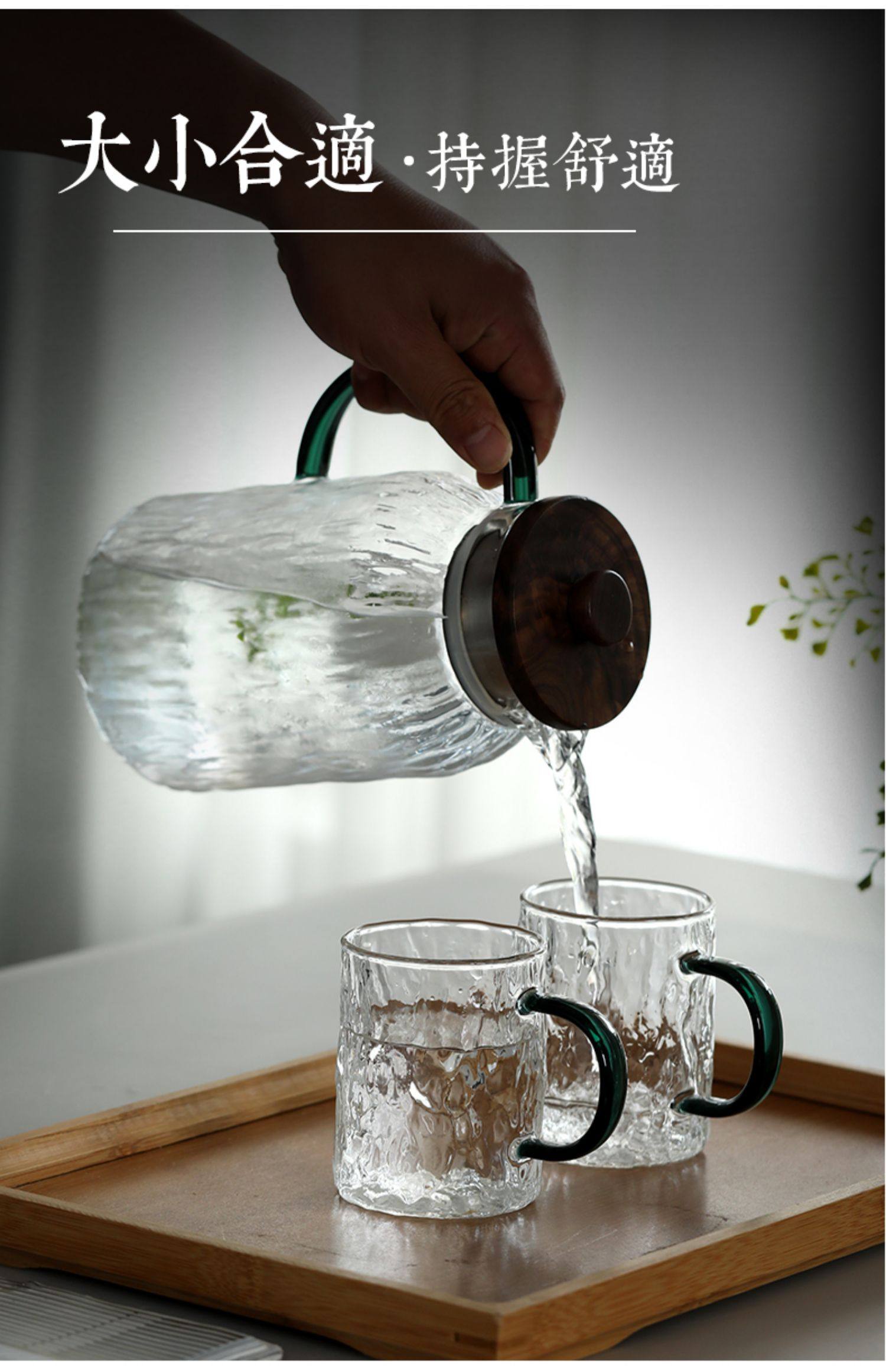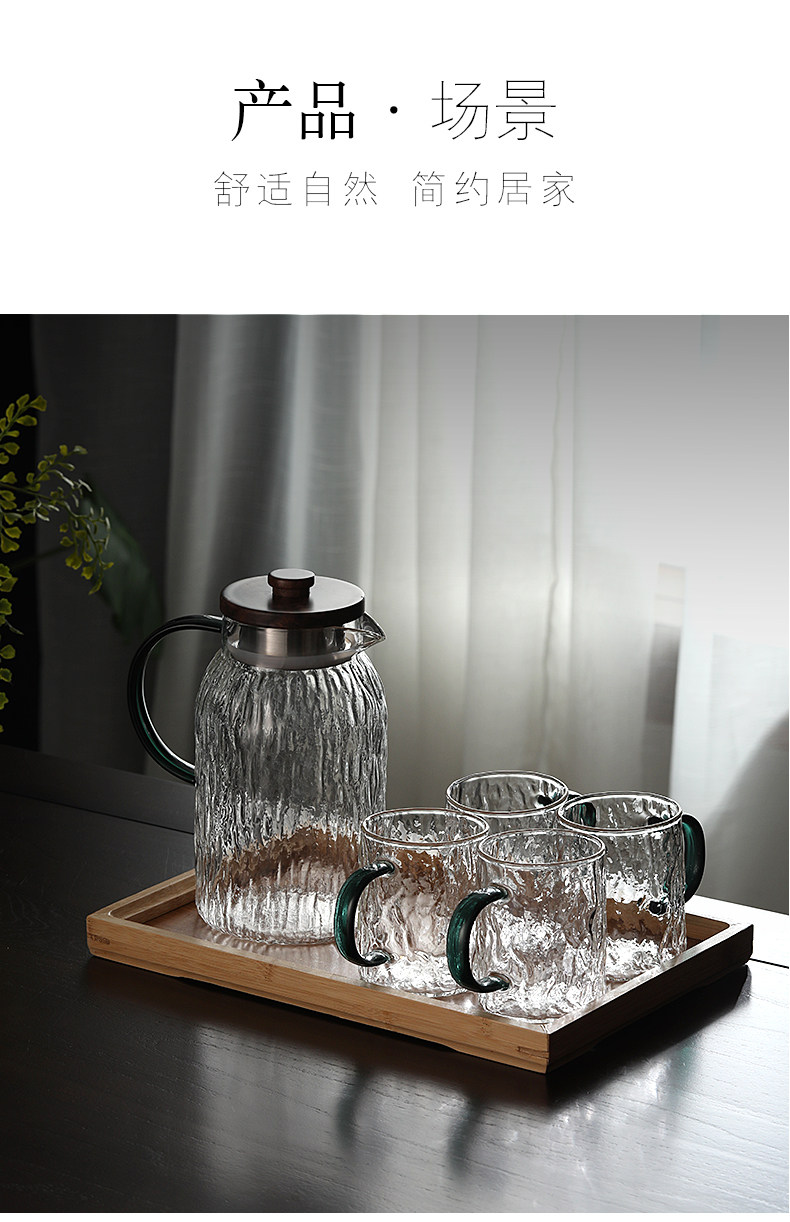 explosion-proof glass water pitcher heat resistant cold water jug water cup set heat-resistant large capacity teapot water drying bottle household