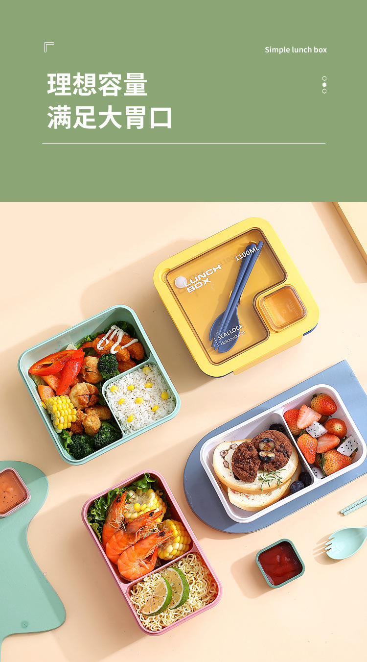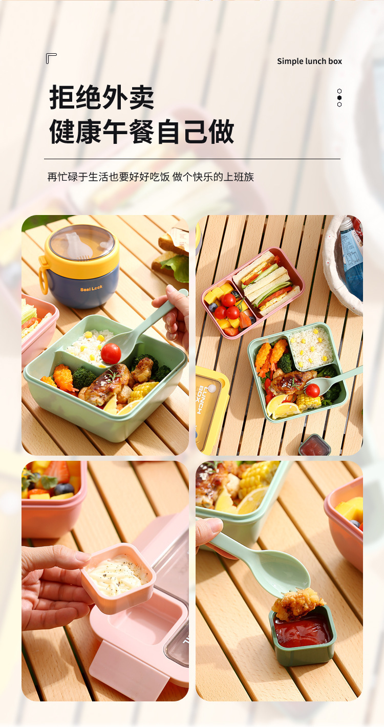 japanese-style student lunch box plastic lunch box single-layer lunch box microwave oven heating heat retaining belt sauce grid tableware