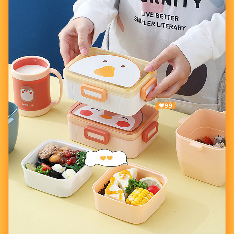 6ml cartoon square double buckle divided lunch box