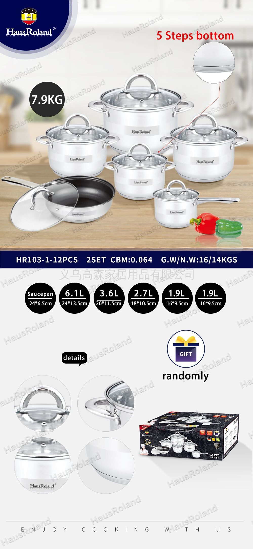 Hausroland Stainless Steel 304 Thickened Pot Set Stockpot Milk Pot Frying Pan High-End Kitchenware Gift