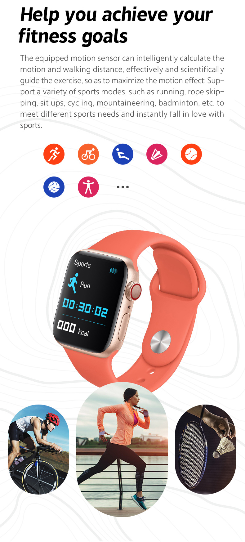| 多运动 | 跳绳,跑步,仰卧起坐,乒乓球,篮球,羽毛球,登山等 | Multi-sport | Rope skipping、Run、situp、Table Tennis、Basketball、Badminton、Mountaineering etc. | ||