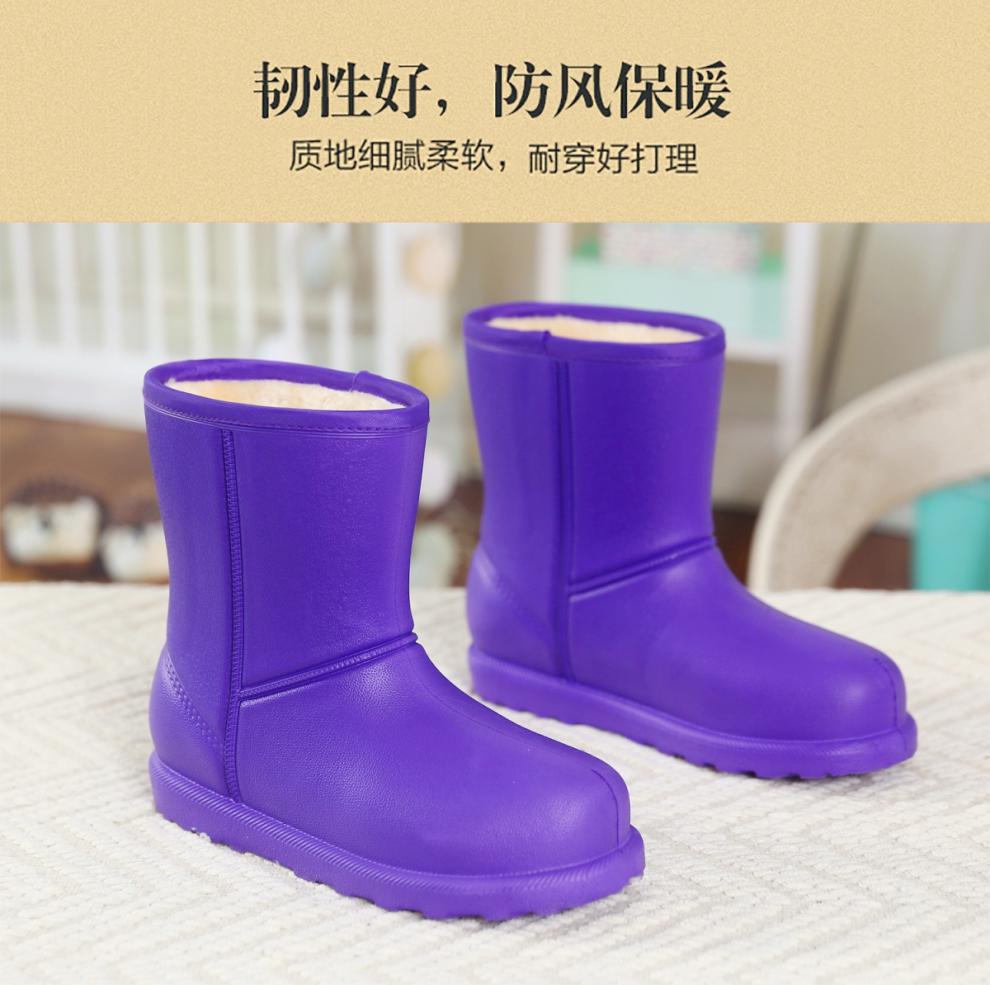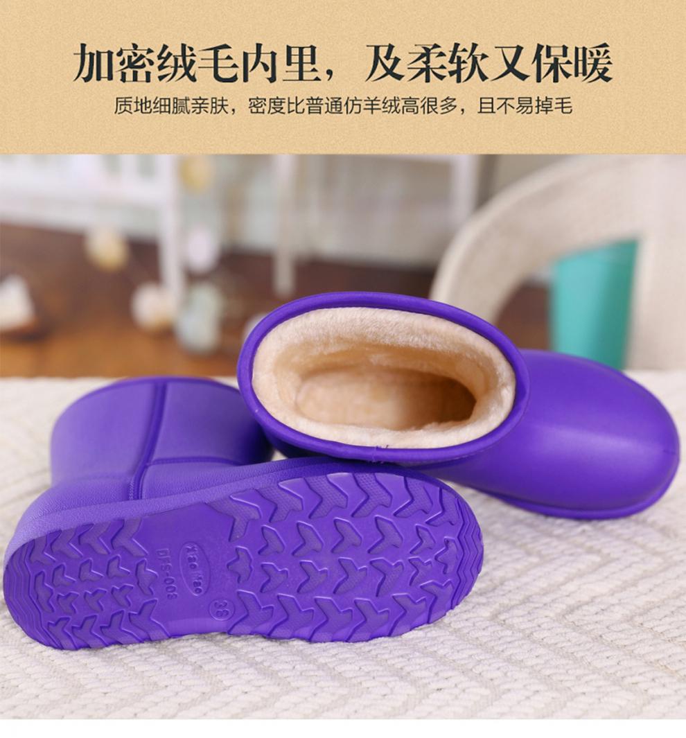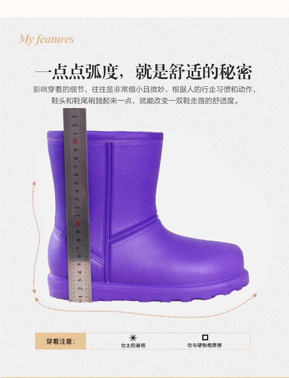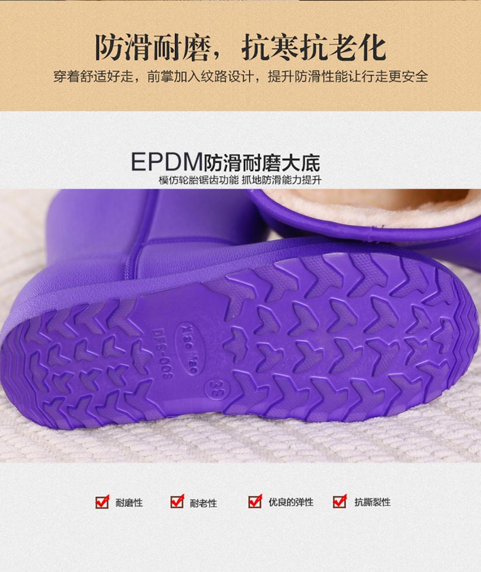 厂家直营:此款产品采用EPDM高弹橡塑料,弹性好,柔暖舒适,一次性注塑成型,不存在开胶断底的担忧,下雨天,下雪天,多可穿着,防水防滑,踩水不会透,透明袋子包装
