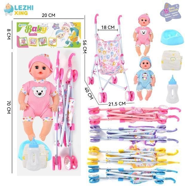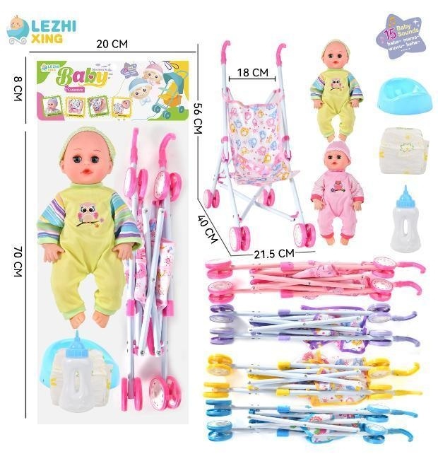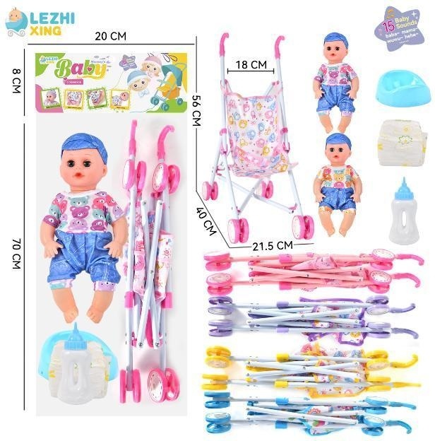 Product Name: 14 inch 15-tone male baby drinking water and urinating with accessories iron push car suit two models mixed