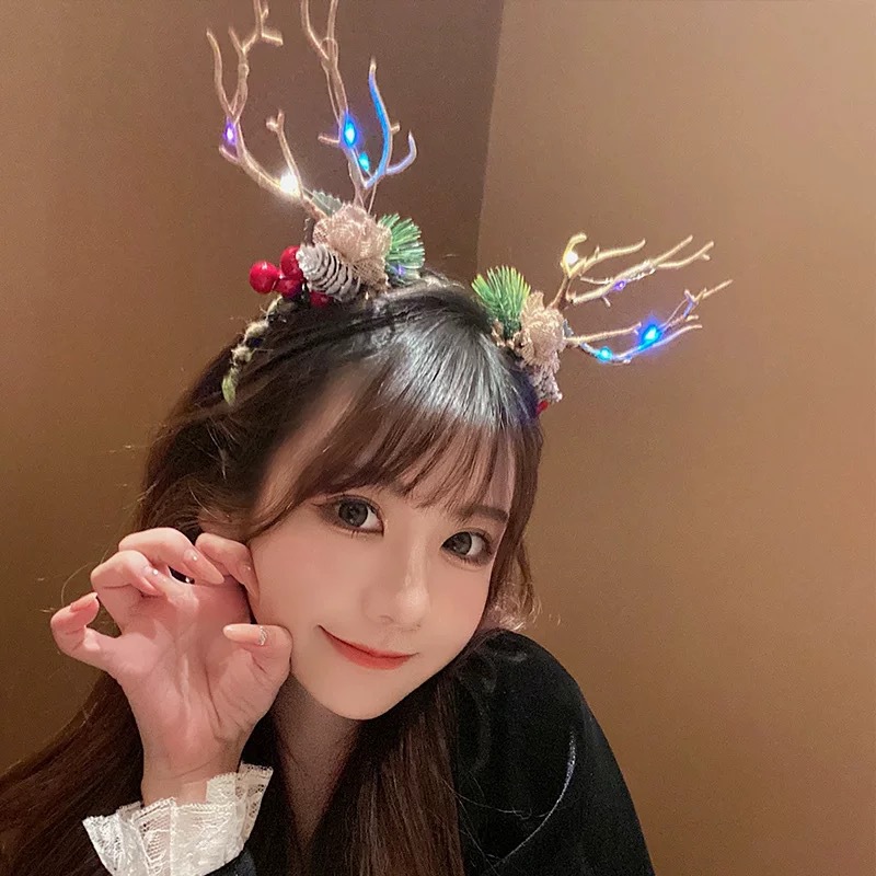 antlers branch headband with colored lights
