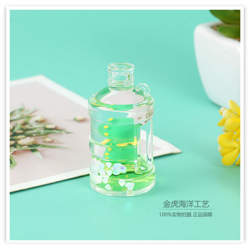 creative pendant little dinosaur quicksand keychain into oil big bottle bucket bottle drift bottle cartoon oil leakage gift