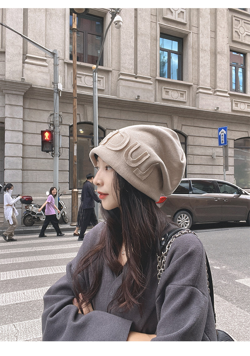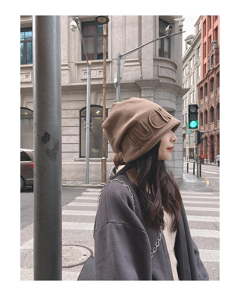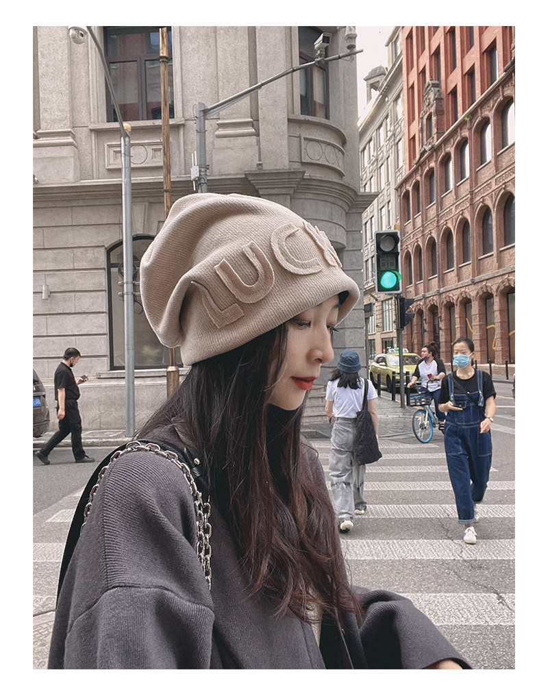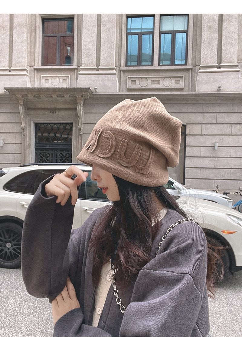 Autumn Winter Japanese Beanie Hat Internet Celebrity Letters All-Match Pile Heap Cap Thickened Thermal Knitting Woolen Cap Warm Hat for Children
