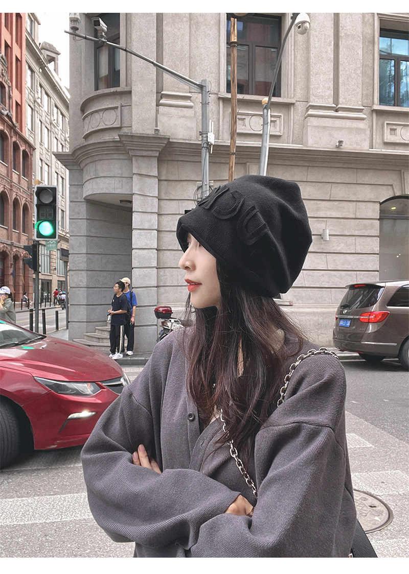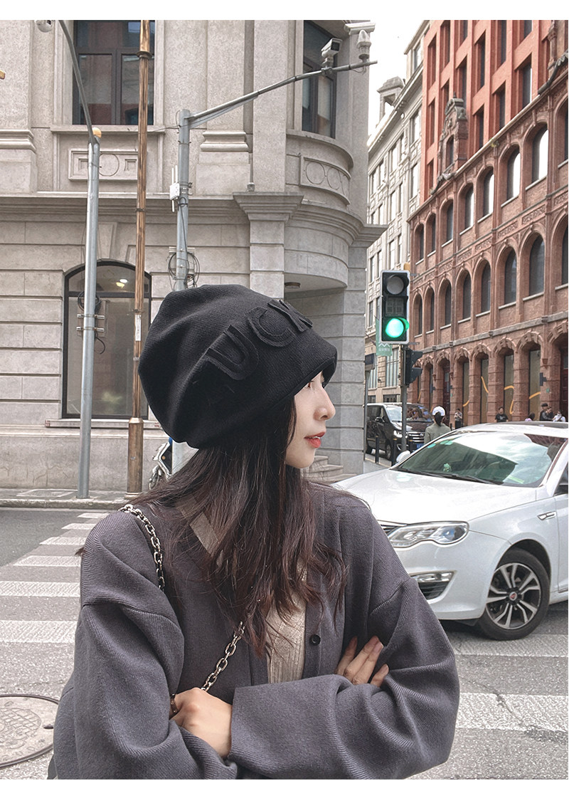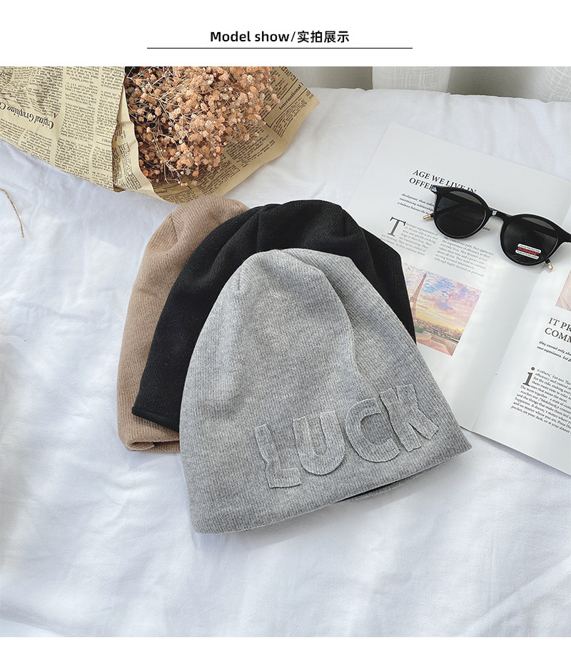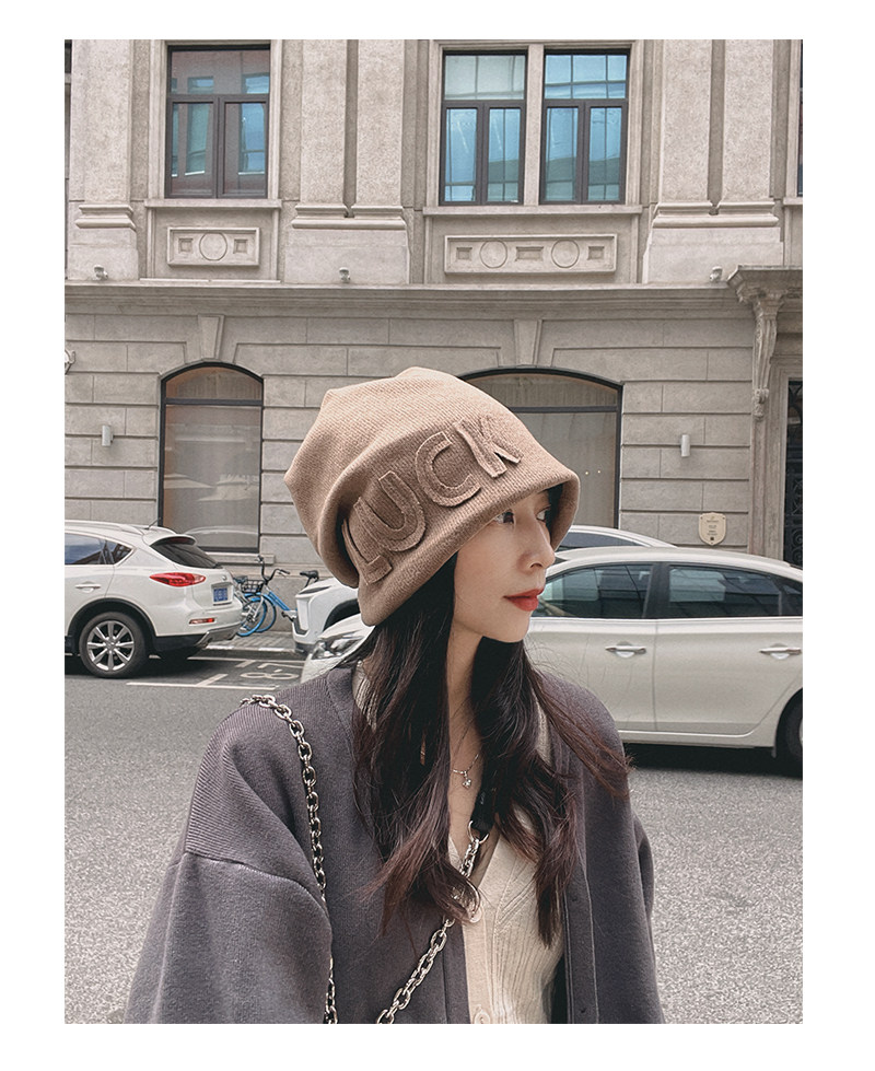 Autumn Winter Japanese Beanie Hat Internet Celebrity Letters All-Match Pile Heap Cap Thickened Thermal Knitting Woolen Cap Warm Hat for Children