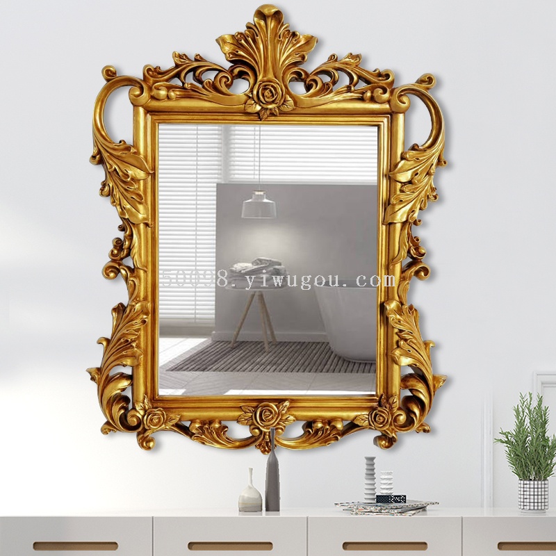 European-Style Vintage Engraving Wall-Hanging Mirror Hotel KTV Club Wash Basin Model Room Home Decoration Bathroom Wedding Decorative Mirror