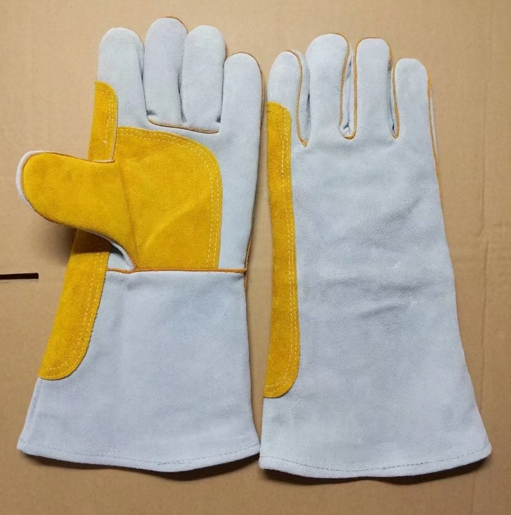 14-inch cowhide welding gloves heat-proof Labor Protection Anti-scald cowhide welder wear-resistant lengthen and thicken labor protection leather gloves