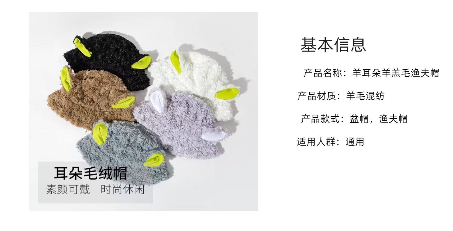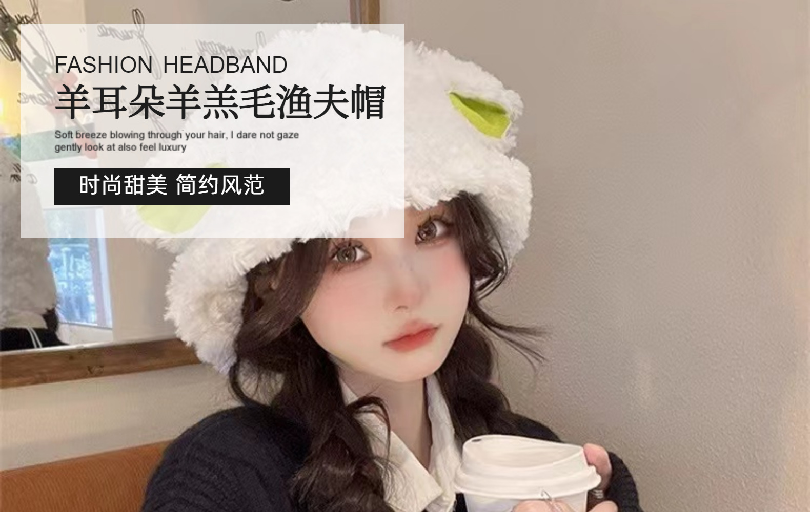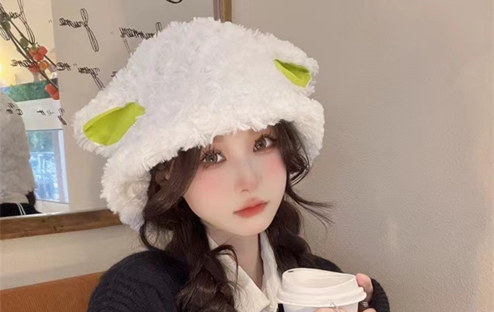 Internet Hot Sheep Got a Sheep Cap with Ears Female Autumn and Winter Cute Lamb Wool Bucket Hat Female Warm Plush Bucket Hat Tide
