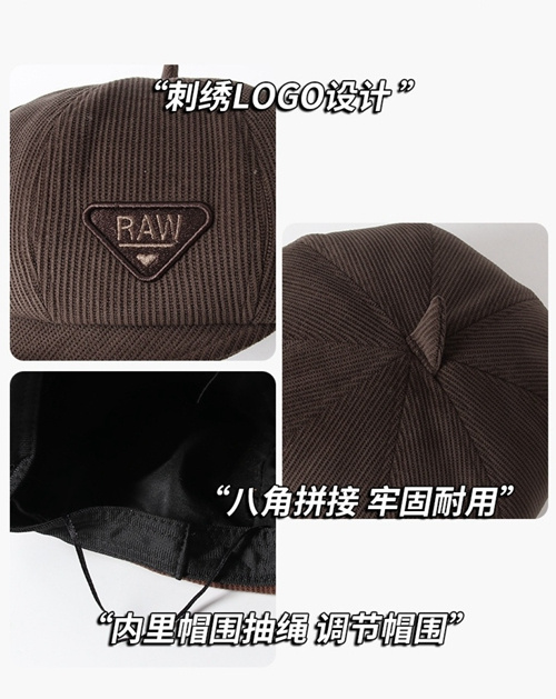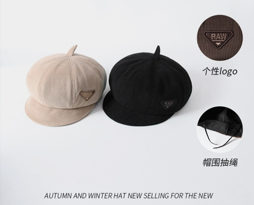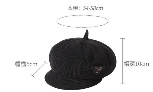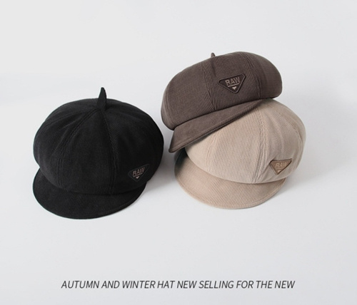 Octagonal Cap Women's Autumn and Winter Embroidery Raw Beret Retro Trendy Big Head Circumference Pumpkin Hat Face Slimming Painter Cap