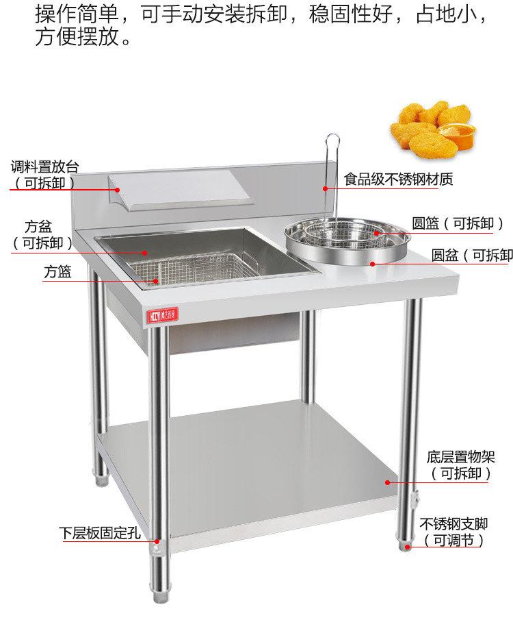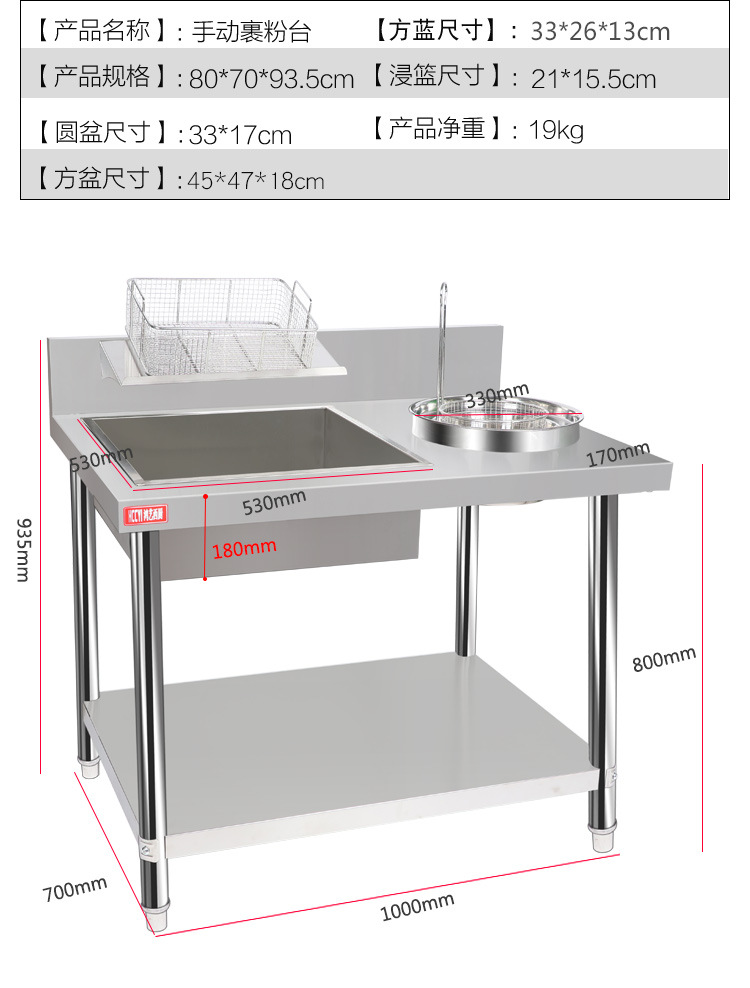 Stainless Steel Wrapped Powder Fruit Powder Table Hamburger Shop Equipment Wrapping Table Fried Chicken Powder Coating Machine Tools