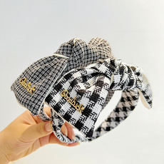 Product Name: New Fall and Winter Korean Style Collage Knot Hairband with Elegant and Graceful Check Pattern, Versatile Hair Accessories, Hair Band, Hair Clips F757Width: About 7cmProduct Code: F757Weight: 30g