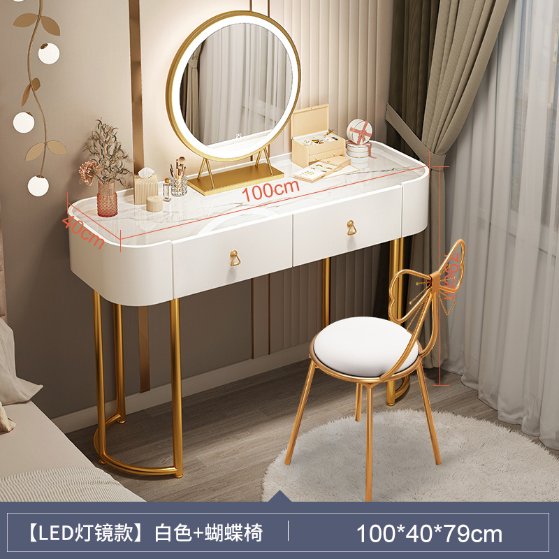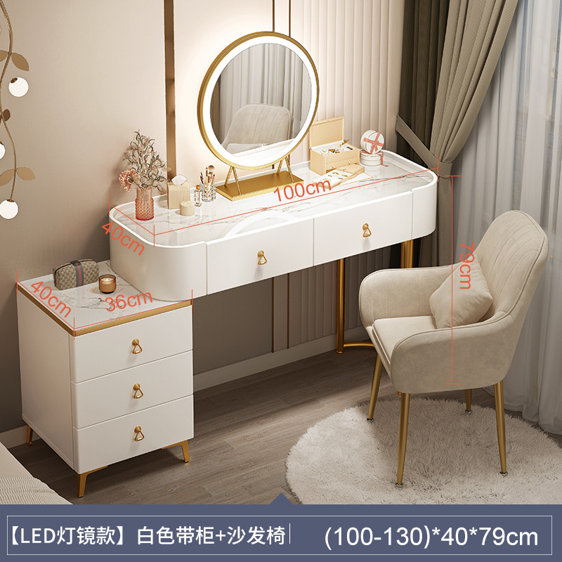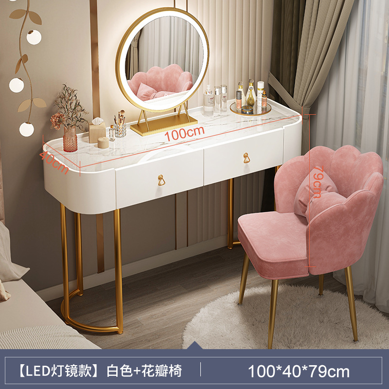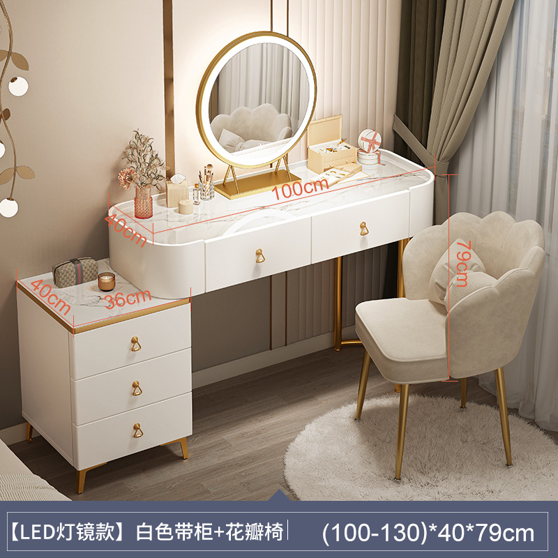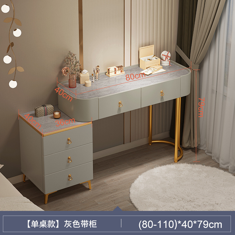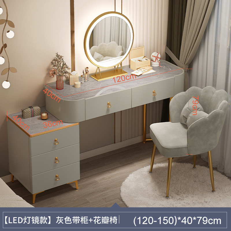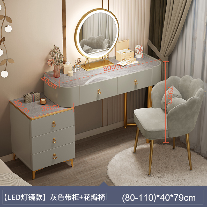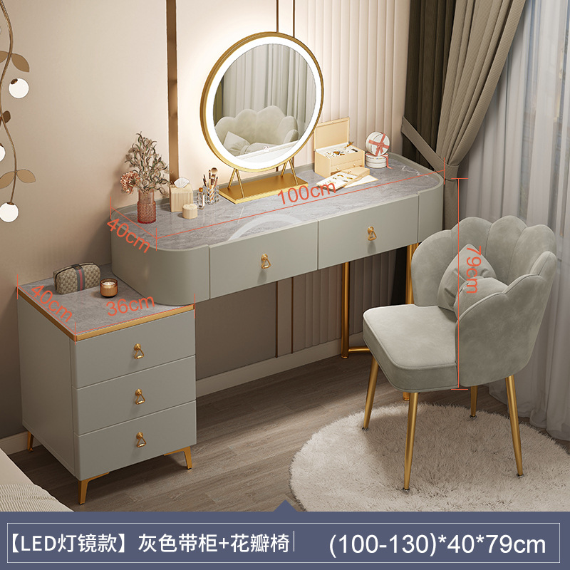 [table + side cabinet + smart light mirror + petal chair] 100cm light luxury gray: spacious desktop three-side fence