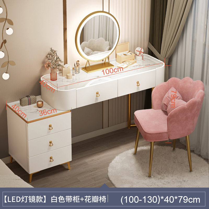[table + side cabinet + smart light mirror + petal chair] 100cm elegant white: spacious desktop three-side fence