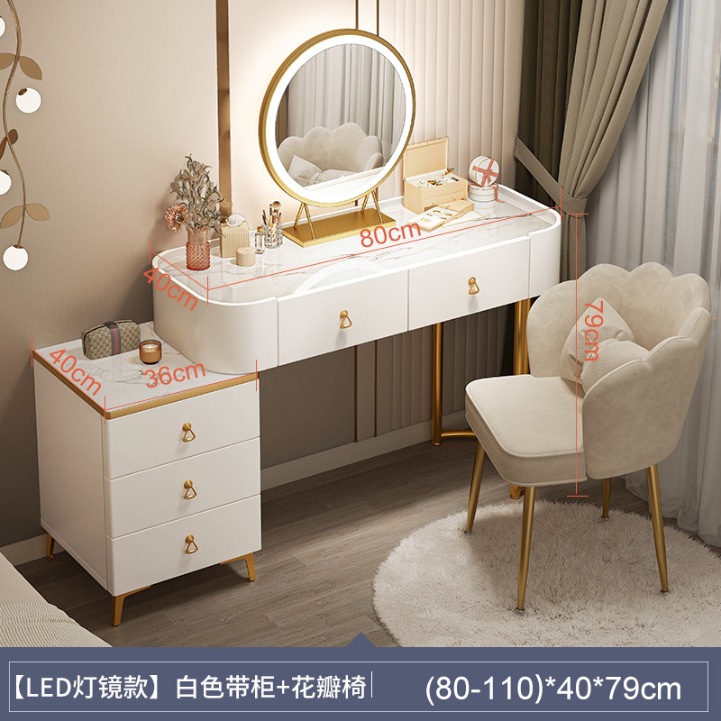[table + side cabinet + smart light mirror + petal chair] 80cm light luxury gray: spacious desktop three-side fence