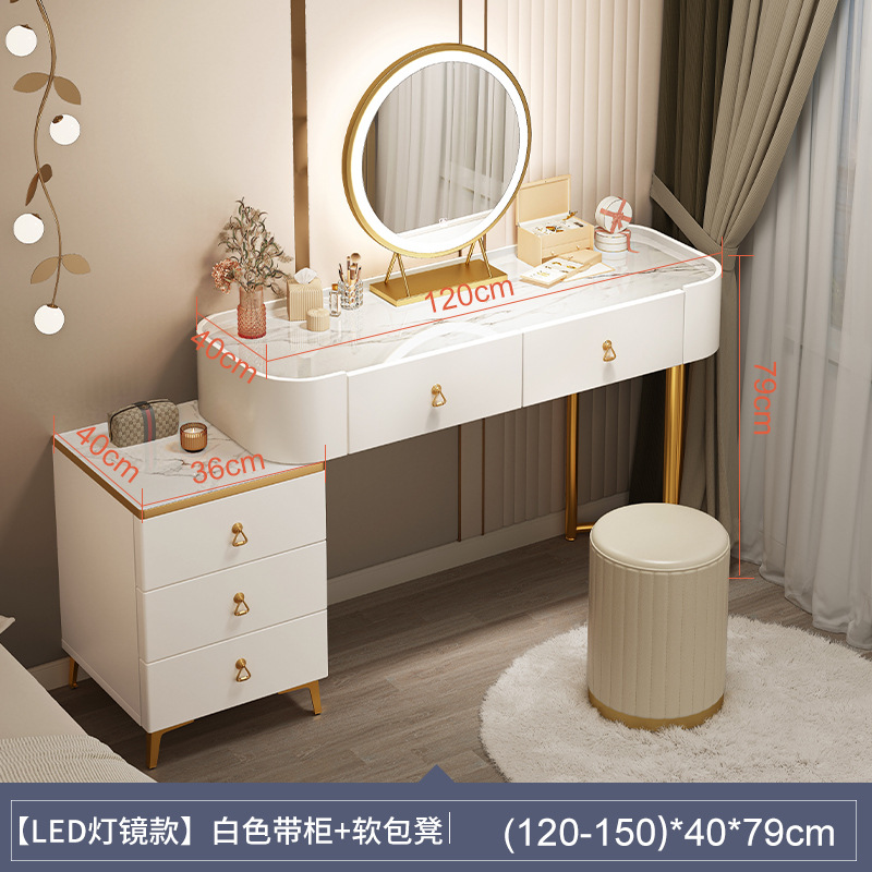 [table + side cabinet + smart light mirror + soft fabric covered stool] 120cm elegant white: spacious desktop three-sided fence