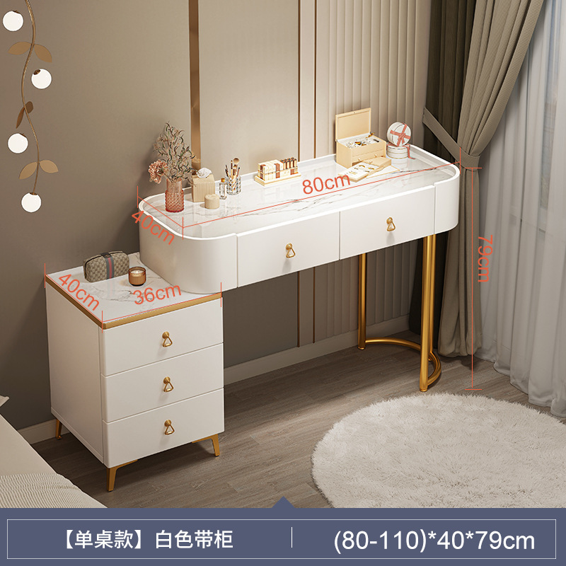 [table + side cabinet + smart light mirror + couch] 80cm elegant white: spacious desktop three-side fence