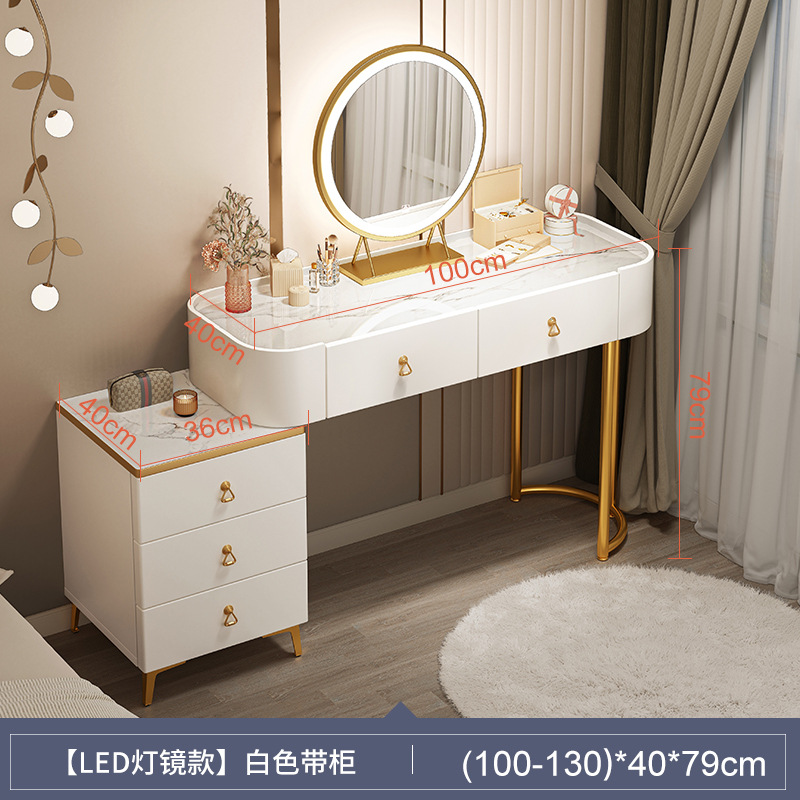 [table + side cabinet + smart light mirror + soft fabric covered stool] 100cm elegant white: spacious desktop three-sided fence